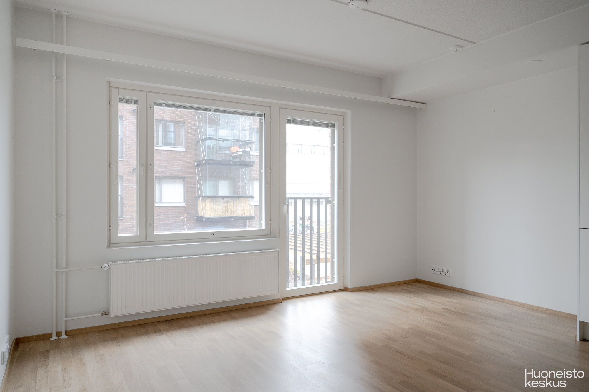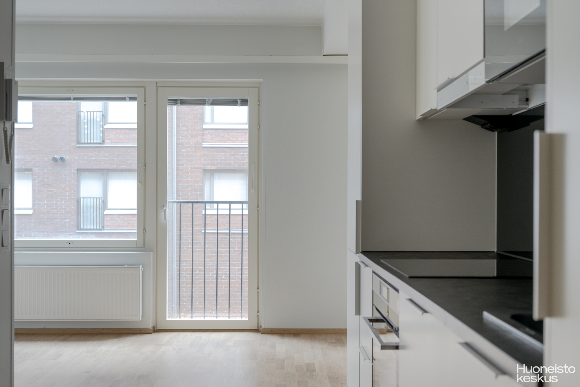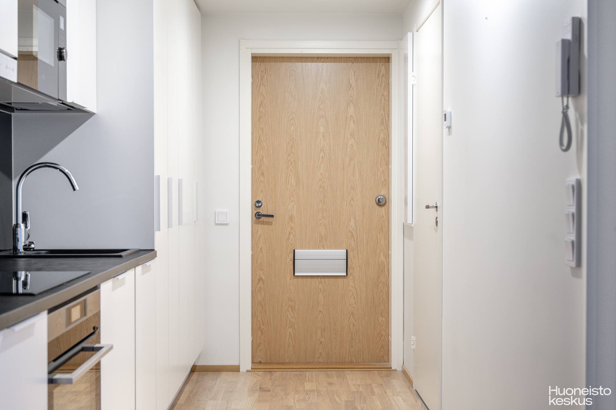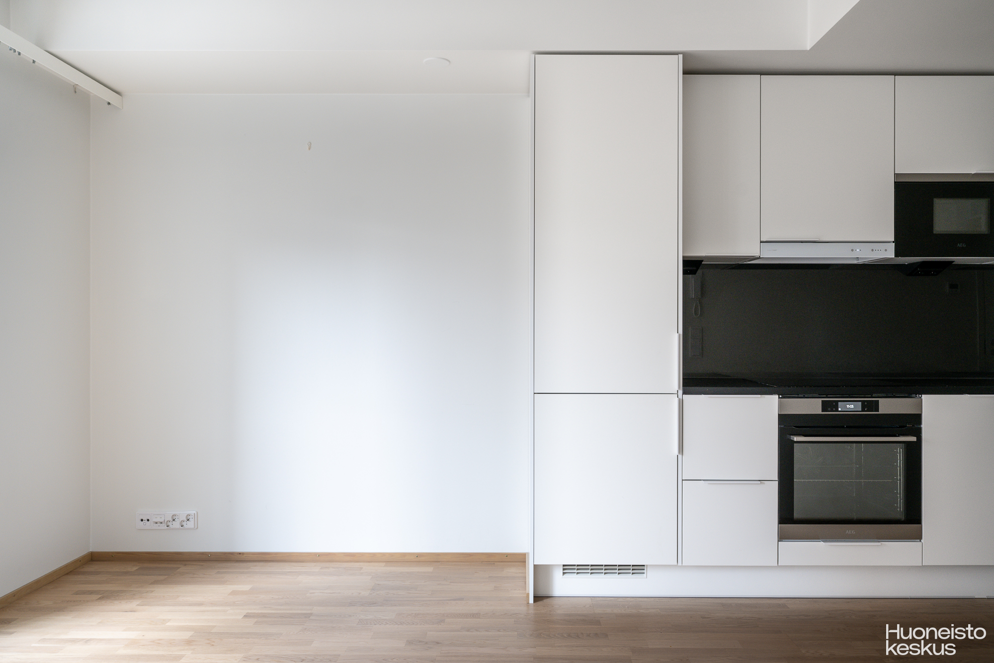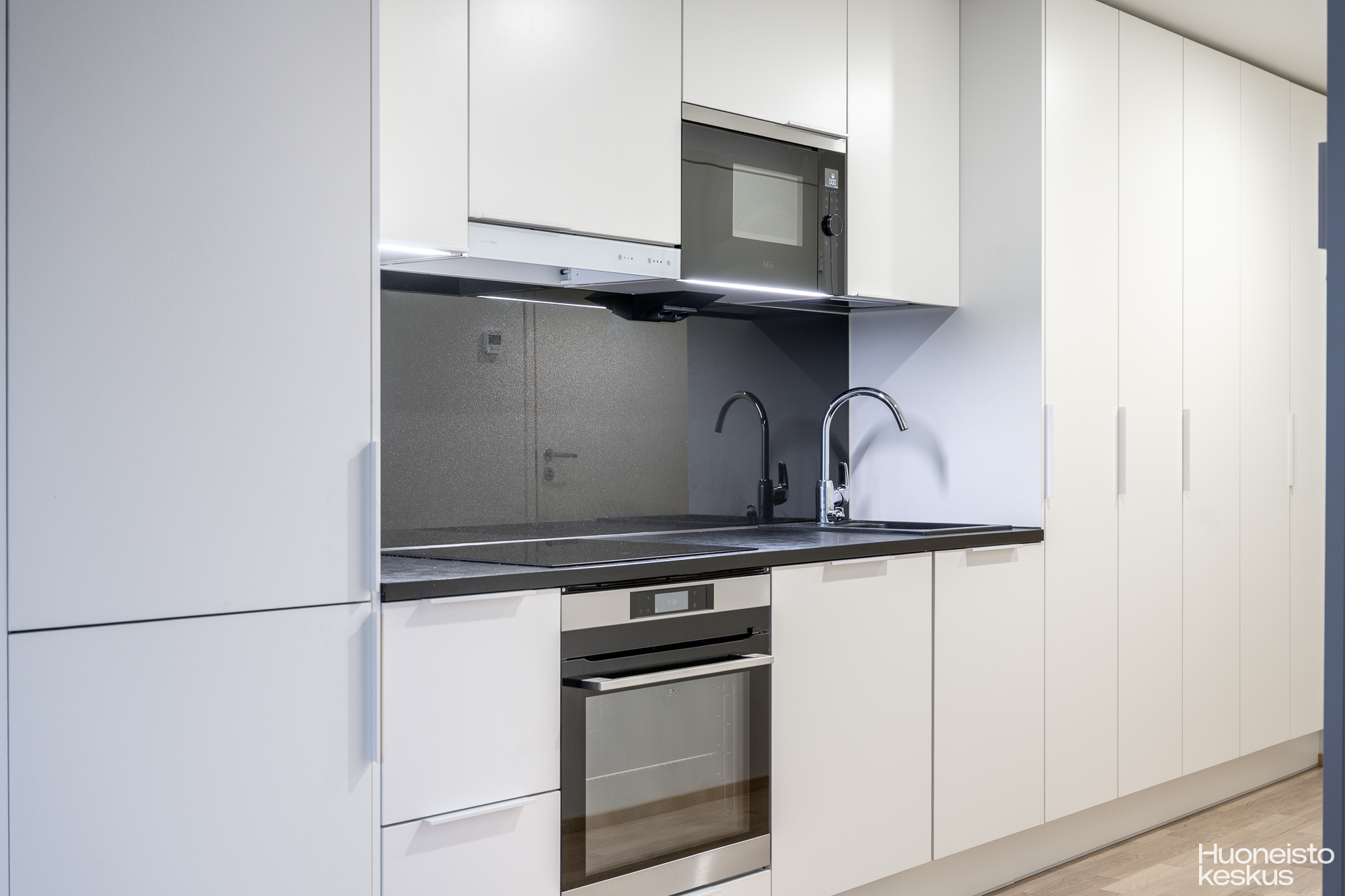 Tämä citykoti on korkeatasoisesti varusteltu. Lämminhenkinen parkettilattia sekä integroidut kodinkoneet luovat näyttävyyttä ja tyylikkyyttä avaraan oleskelutilaan. Tilavaan kylpyhuoneeseen mahtuu hyvin pesukone ja sen saa kätevästi piiloon lasiovien taakse.