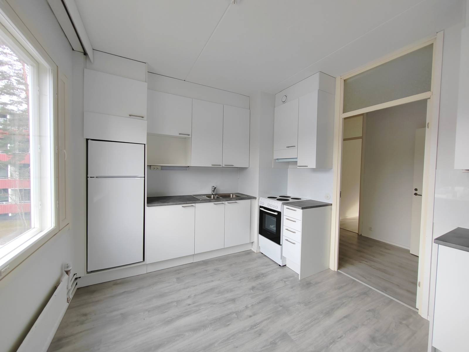 | Keittiön kuvaus | Liesi (Keraaminen liesi), seinät (maali), lattiat (parketti), jääkaappipakastin |