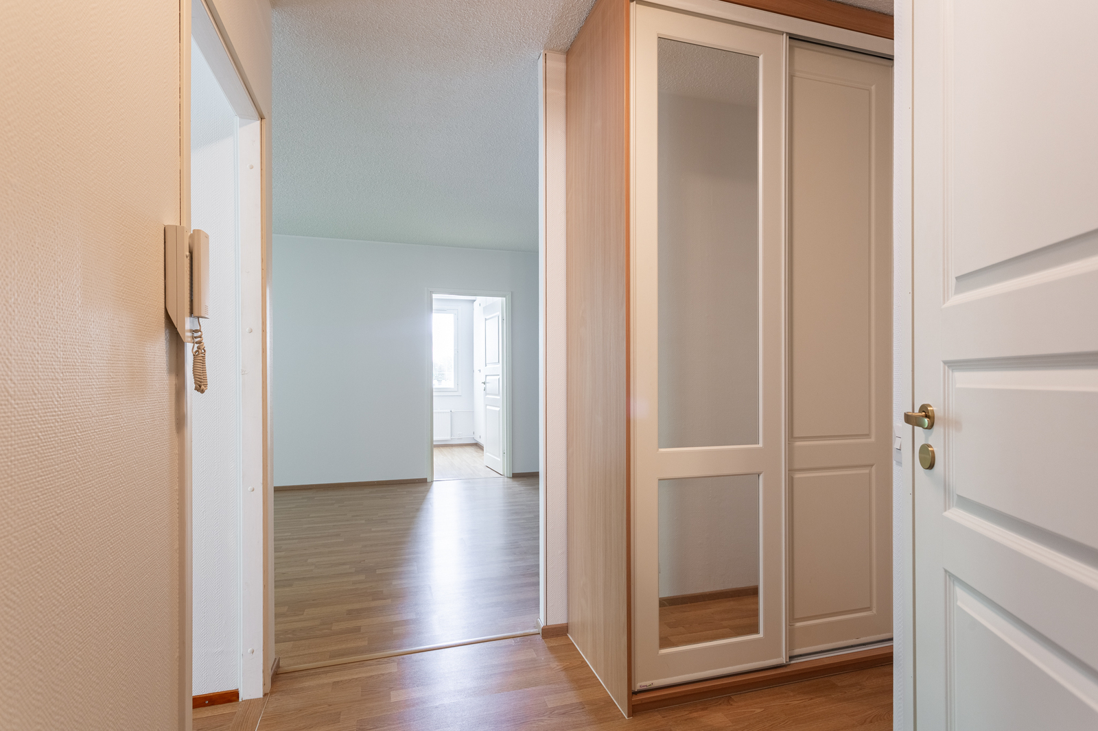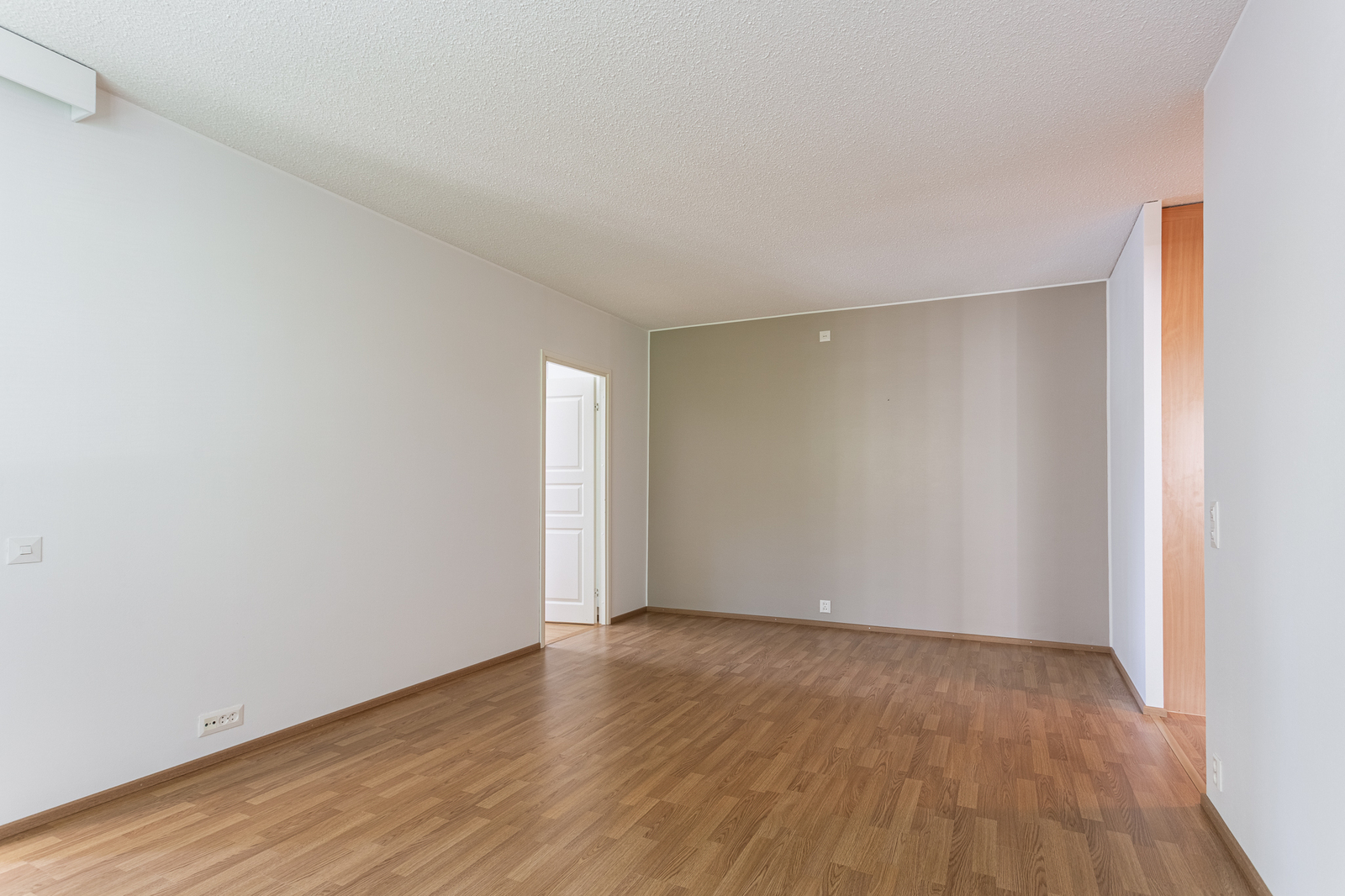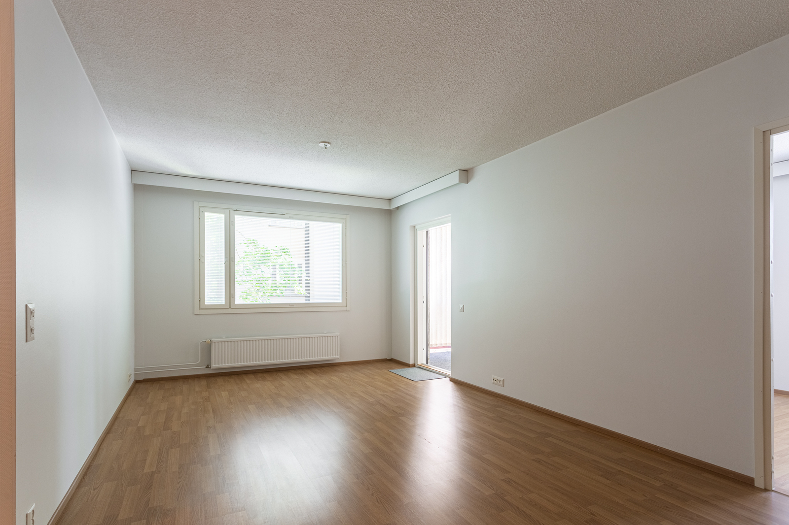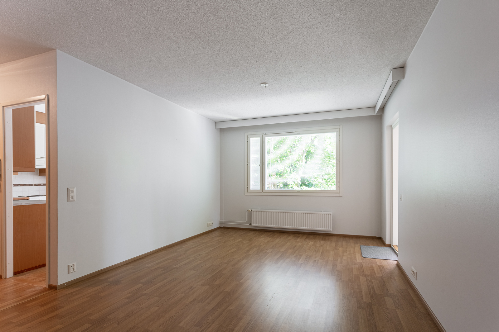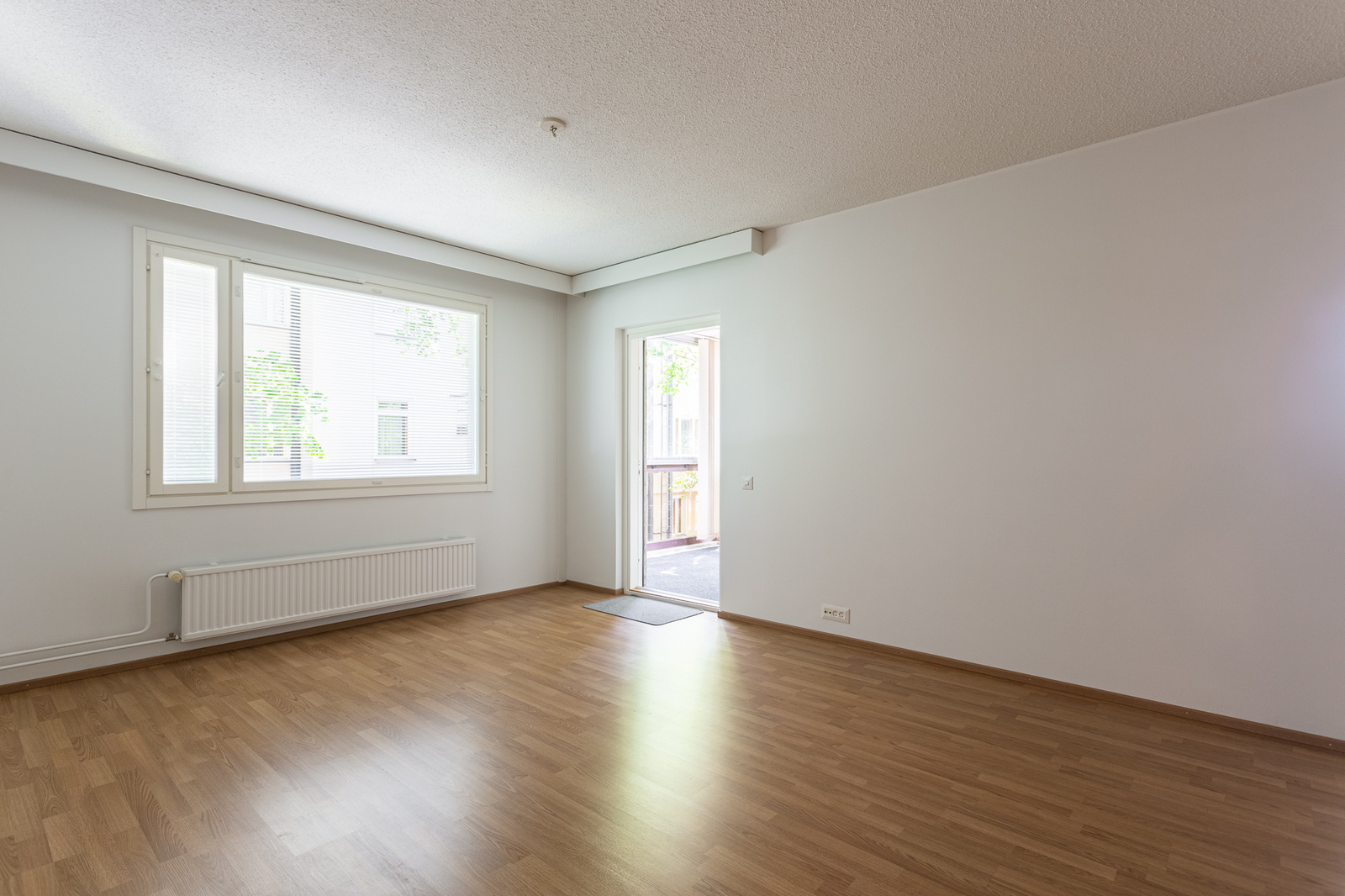 Asunto on hiljattain pintaremontoitu, seinissä hillityn värinen maali pinta ja lattiapäällysteenä ajattomat laminaatit.