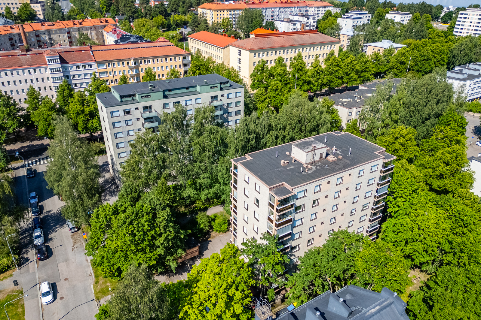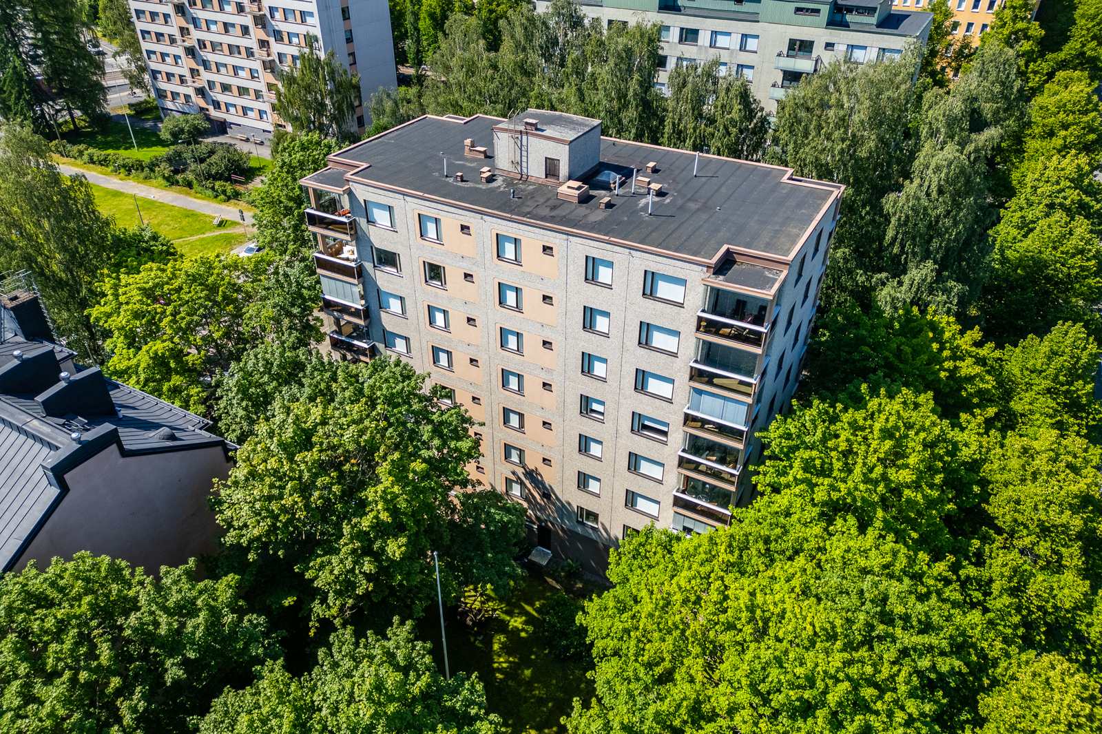 | Tehdyt remontit | – 1984 Kaapeli-Tv – 2002 Kattosaneeraus – 2007 Lukituksen, lämmönjakohuoneen saneeraus, patteritermostaattien uusiminen ja lämpöverkon uusiminen – 2008 Hanojen uusintaa, julkisivujen ja parvekkeiden kuntotutkimus – 2009 Elementtisaumojen uusimista, parvekkeiden korjaussuunnitelma, ilmanvaihtohormien nuohous-, mittaus- ja säätötyö. Sokkelikerroksen julkisivukunnostus ja kellarikerroksen betonilattioiden maalaukset. – 2011 Parveke- ja julkisivuremontti, sis. pakkasrapautuneiden parvekepilarien 2 kpl korjaukset, parvekkeiden etureunojen korjaukset, parvekkeiden vedenpoistojärjestelmien uusimiset, ikkunoiden ulkopuitteiden huoltomaalaukset, parvekelasien uusimiset tarvittavin osin. Aiemmin uusitut parvekelasit on lunastettu osakkailta yhtiölle remonttihankkeeseen kuuluvina. – 2012 Raja-aidan uusiminen – 2013 Piha-alueen kunnostussuunnitelma – 2014 Takapihan kunnostaminen ja istutukset – 2018 Taloyhtiölaajakaista, ilmanvaihtokoneen moottorin uusinta, lämpimän käyttöveden lämmönsäätöventtiilien ja antureiden uusinta – 2020 Ikkunoiden ja parvekeovien vaihto – 2021 Hissiremontti, Jätekatoksen rakentaminen, IV-hormien nuohous ja IV koneiden huolto – 2022 Valaistuksen uusiminen, Ulko-ovet ja avaus automatiikka – 2024 Porrashuoneen huoltomaalaus, Energiatodistus, Ikkunoiden tuloilmaventtiileiden suodattimien uusiminen |