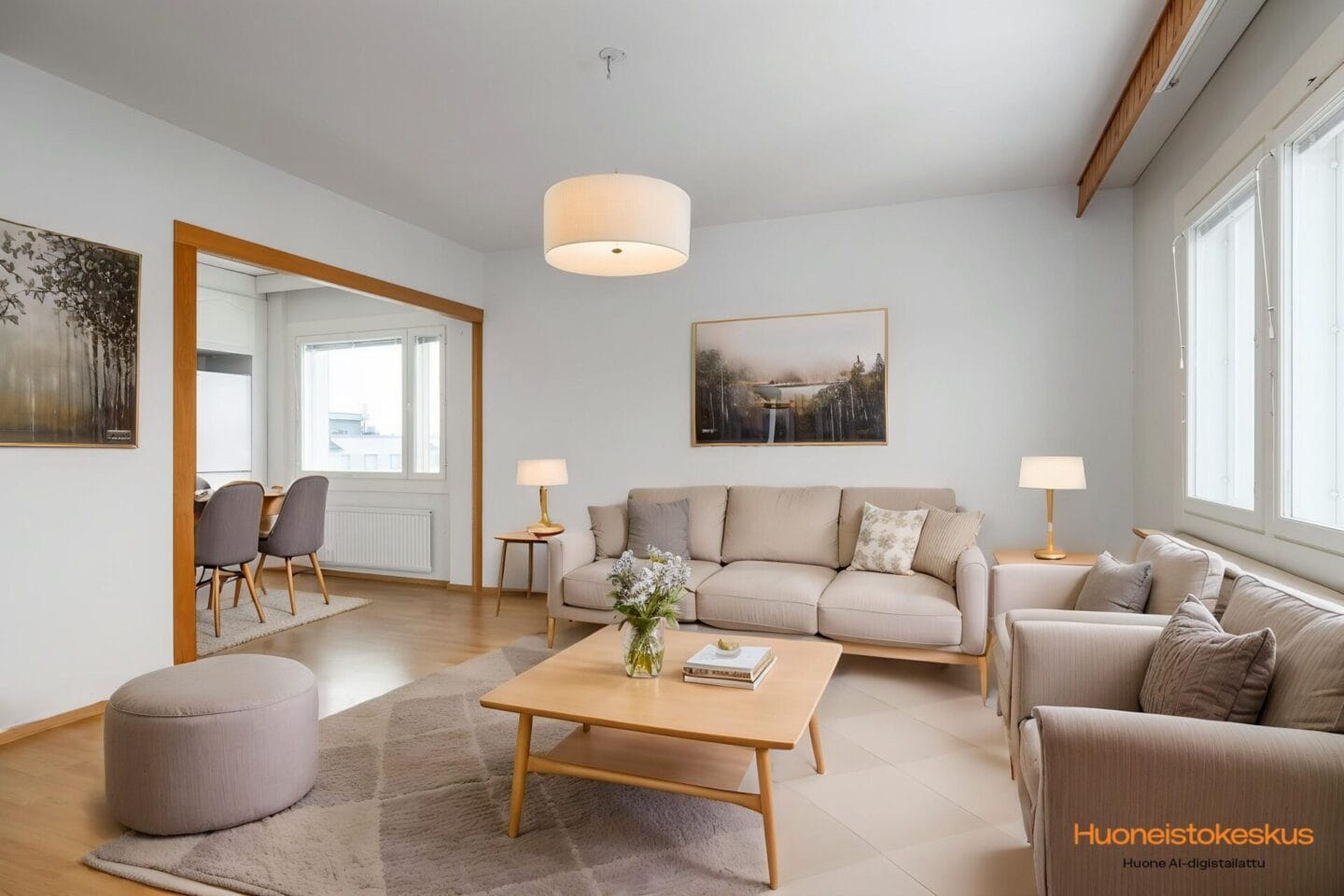 | Olohuoneen kuvaus | Seinät (maali), lattiat (laminaatti) |
