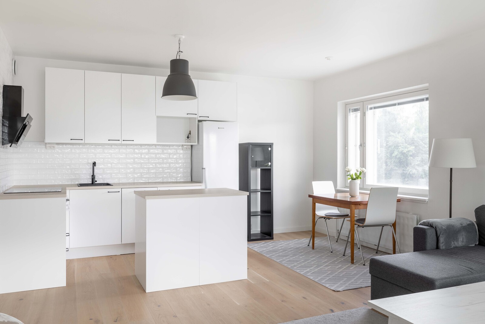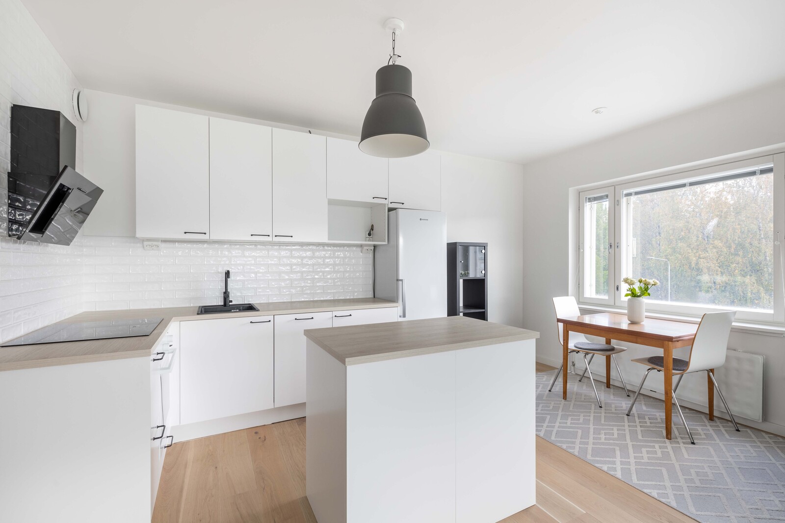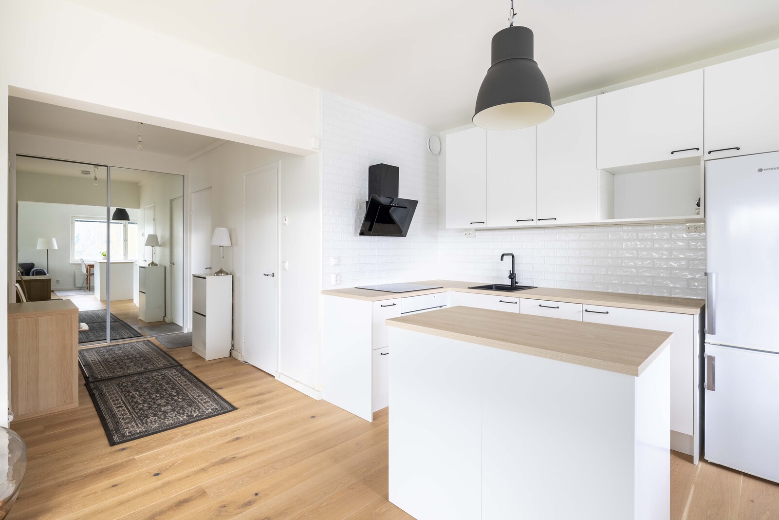 Keittiö on ja kodinkoneet on uusittu vuonna 2023 ja säilytystilaa ja tilaa työskennellä on runsaasti.