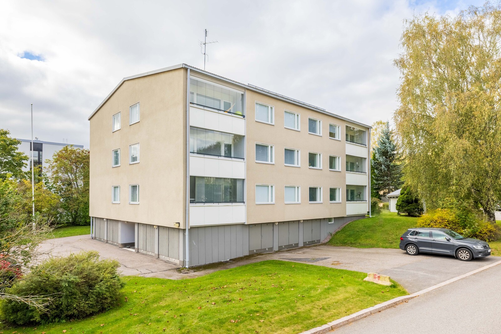 | Tulevat remontit | Pts 2025-2029: Vesikaton kunnon vuosittainen tarkastus ja havaittujen puutteiden korjaus. Tutkitaan pinta- ja hulevesien ohjauksen toimivuus. Porrashuoneen lattian paikkakorjaukset. Kerllariovien korjaus. Vesikourujen toimivuuden parantaminen. Lisäautopaikkojen rakentaminen. |