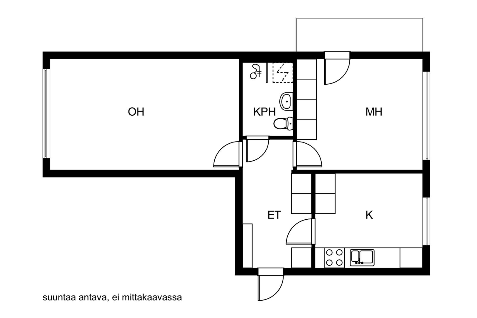 | Huoneistoselitelmä | 2 h, k, kph, lasitettu parveke (Yj. 2 h+k) |