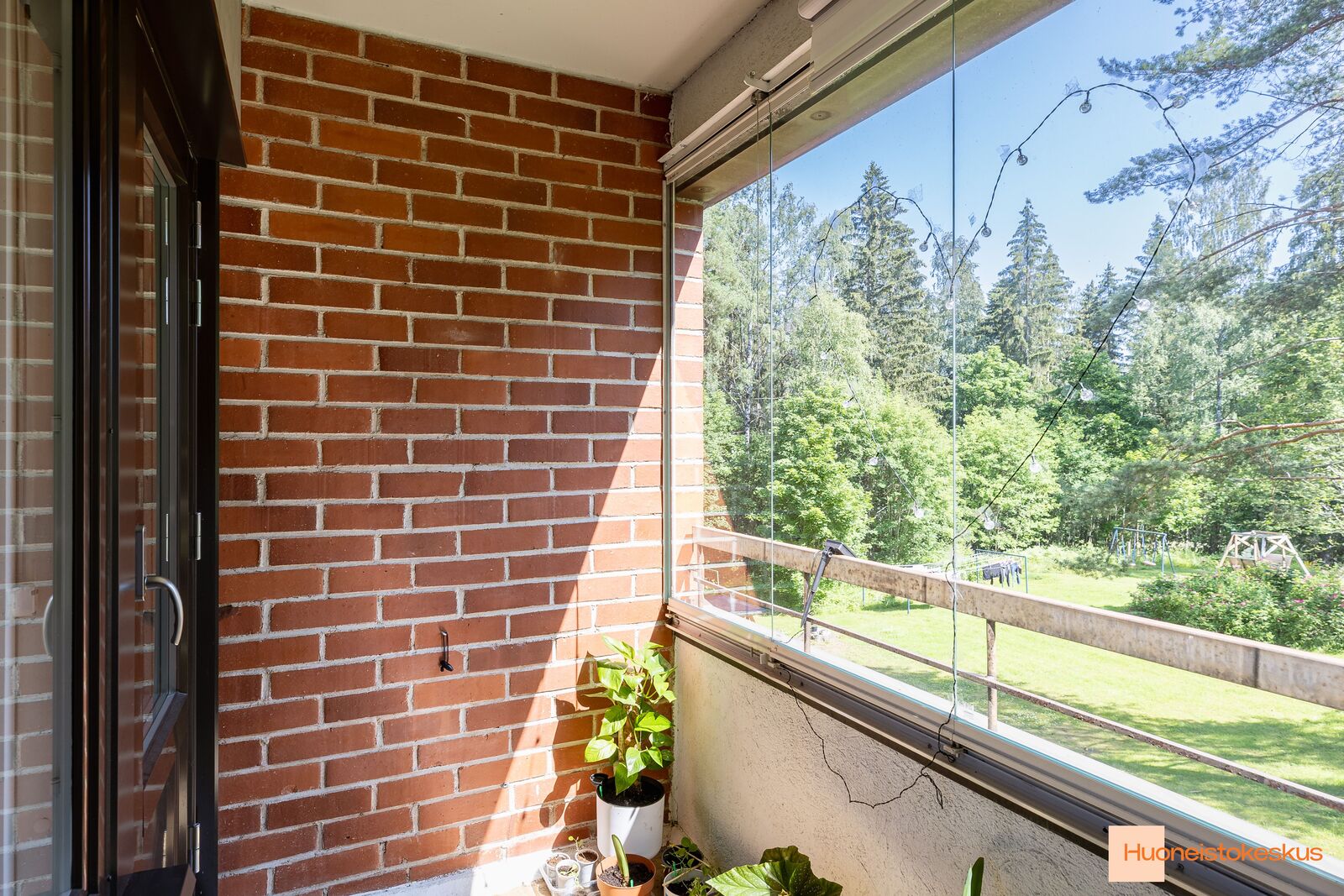 Asunnossa on tilava olohuone, erillinen keittokomero, makuuhuone, kylpyhuone, sekä vaatehuone. Lasitetulta parvekkeelta rauhalliset luontonäkymät.