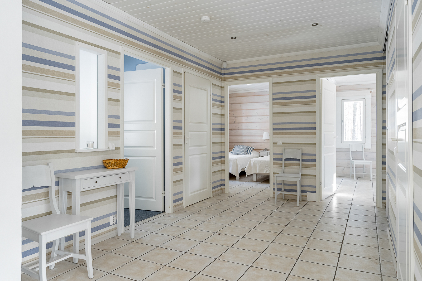 | Makuuhuoneen kuvaus | Lukumäärä: 3, seinät (tapetti ja puu), lattiat (laatta), Kaikissa makuuhuoneissa vaatekomerot |