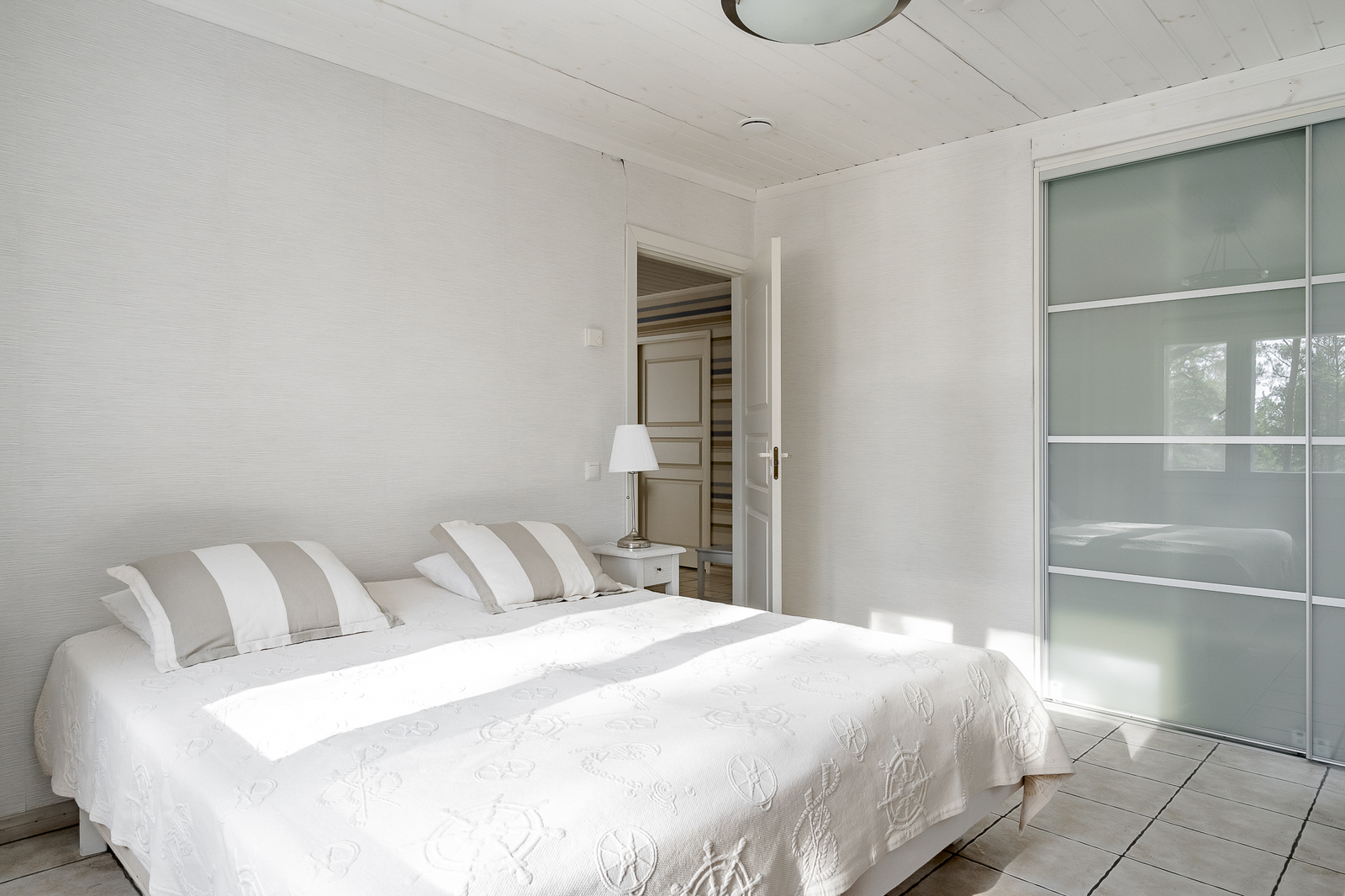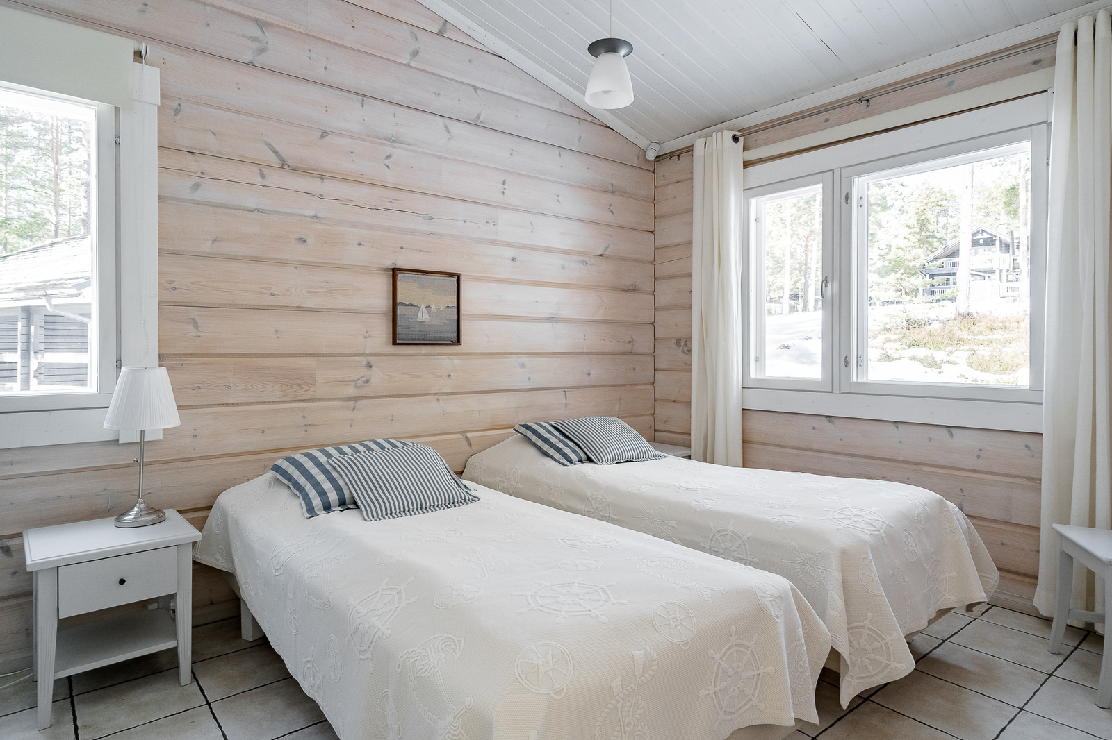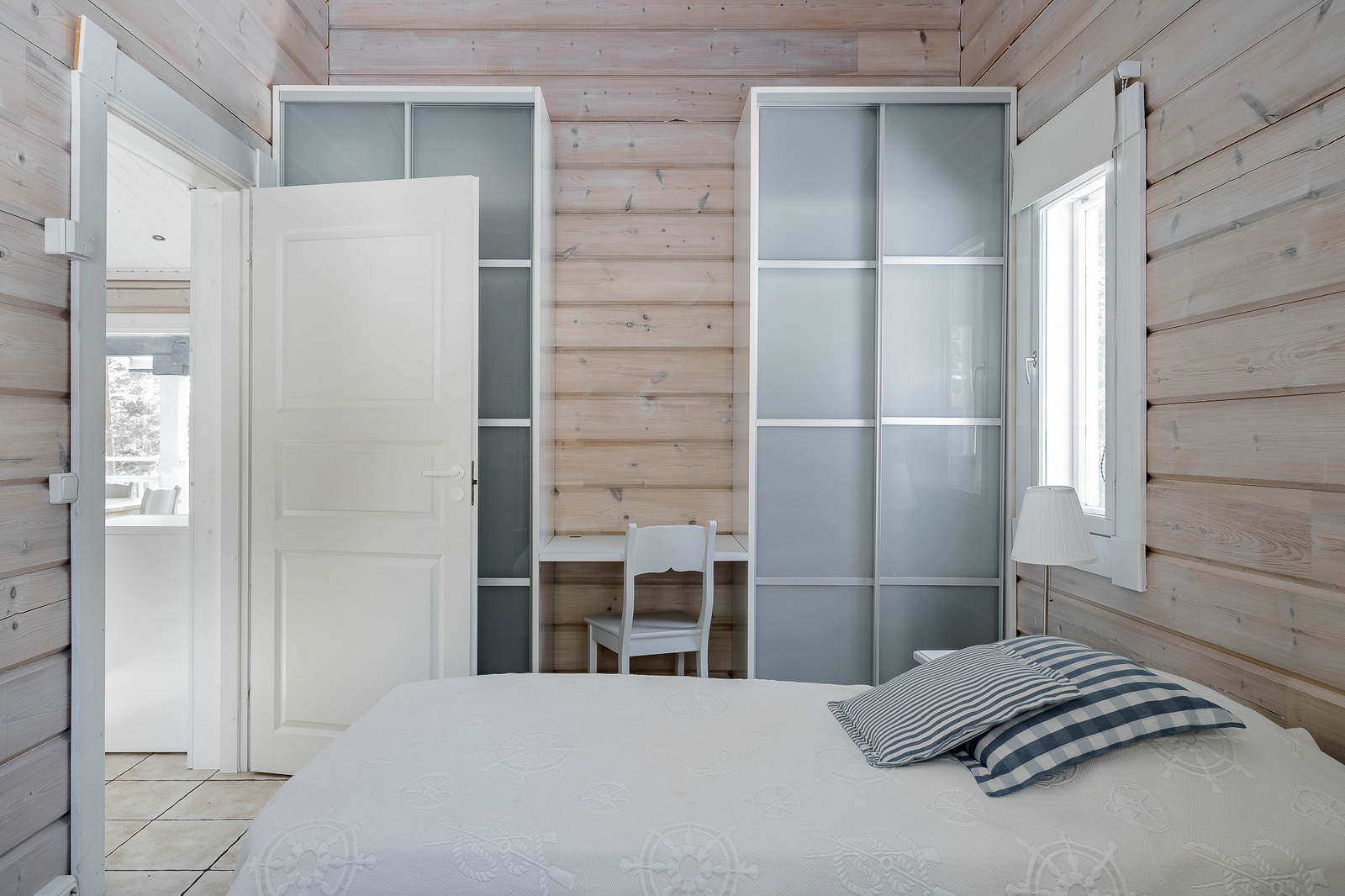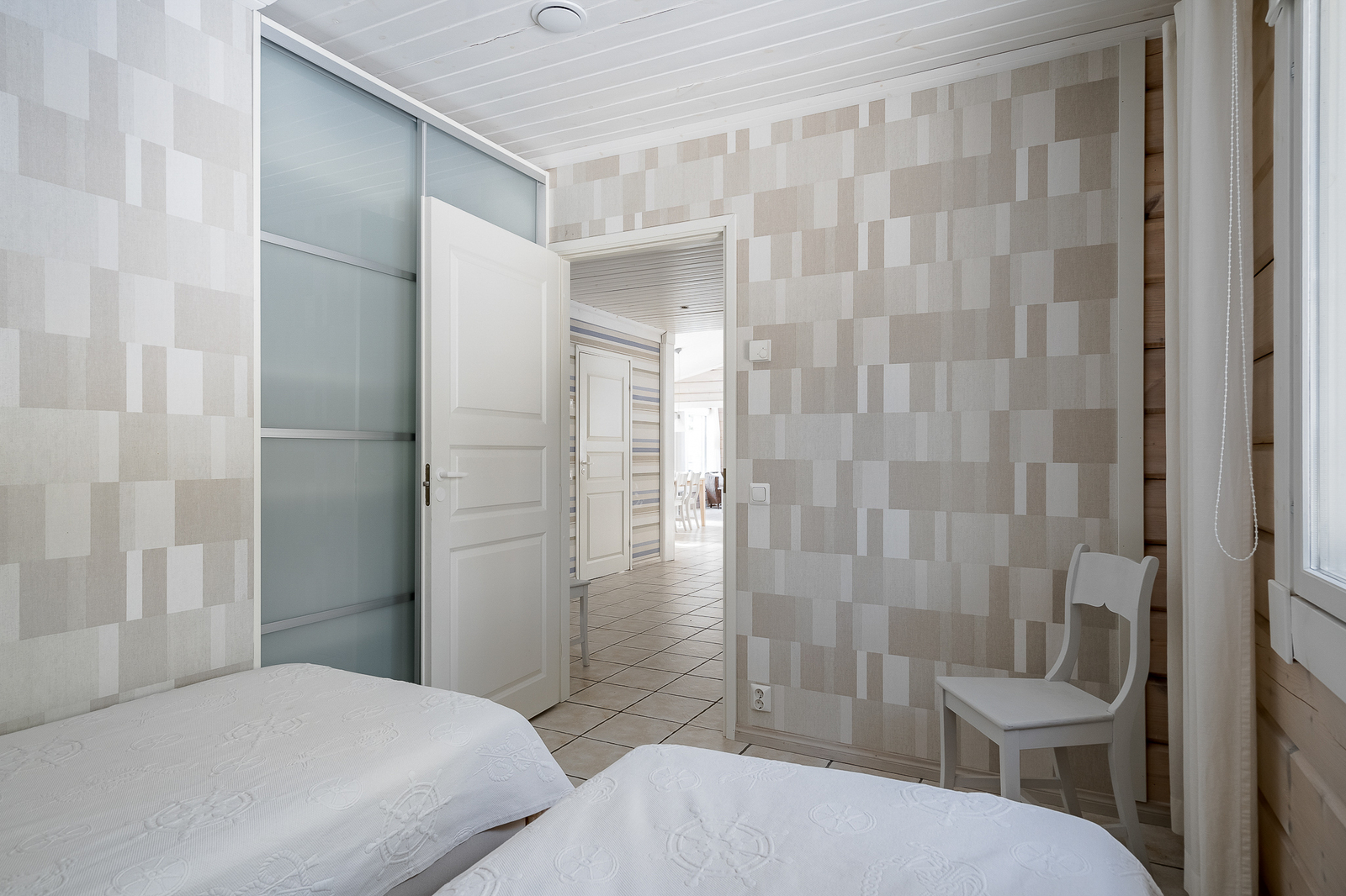 Talon kolmesta makuuhuoneesta kaksi on sijoitettu itäpäätyyn saunan ja peseytymistilojen taakse kauemmaksi olohuoneesta, kolmas makuuhuone on omassa rauhassaan kodin länsipäädyssä.