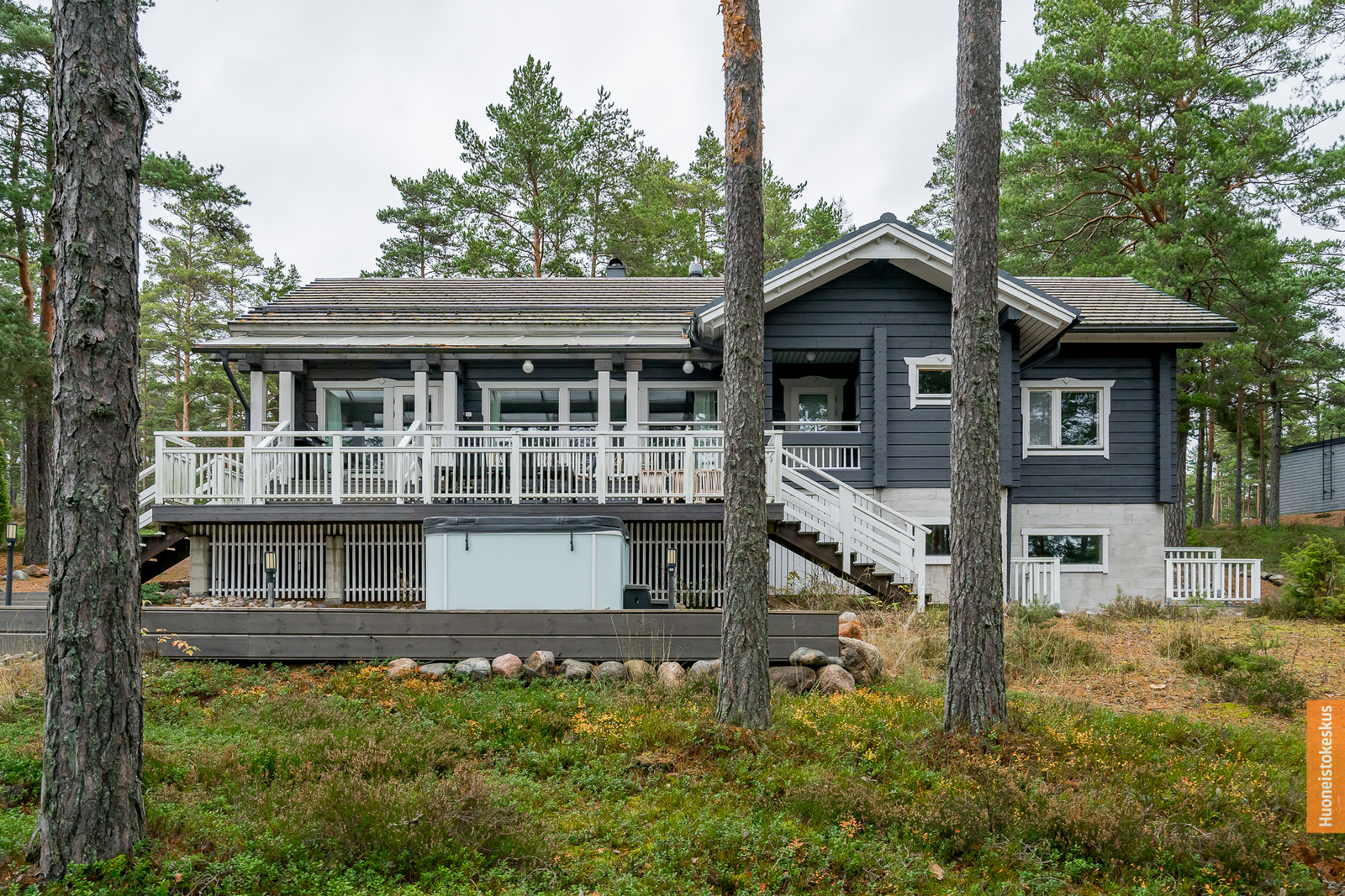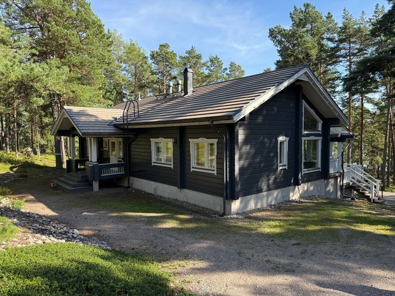 Merellisellä, arvostetulla Airiston alueella hieno lamellihirsihuvila ympärivuotiseen, laadukkaaseen vapaa-ajan viettoon tai vakituiseen asumiseen.
