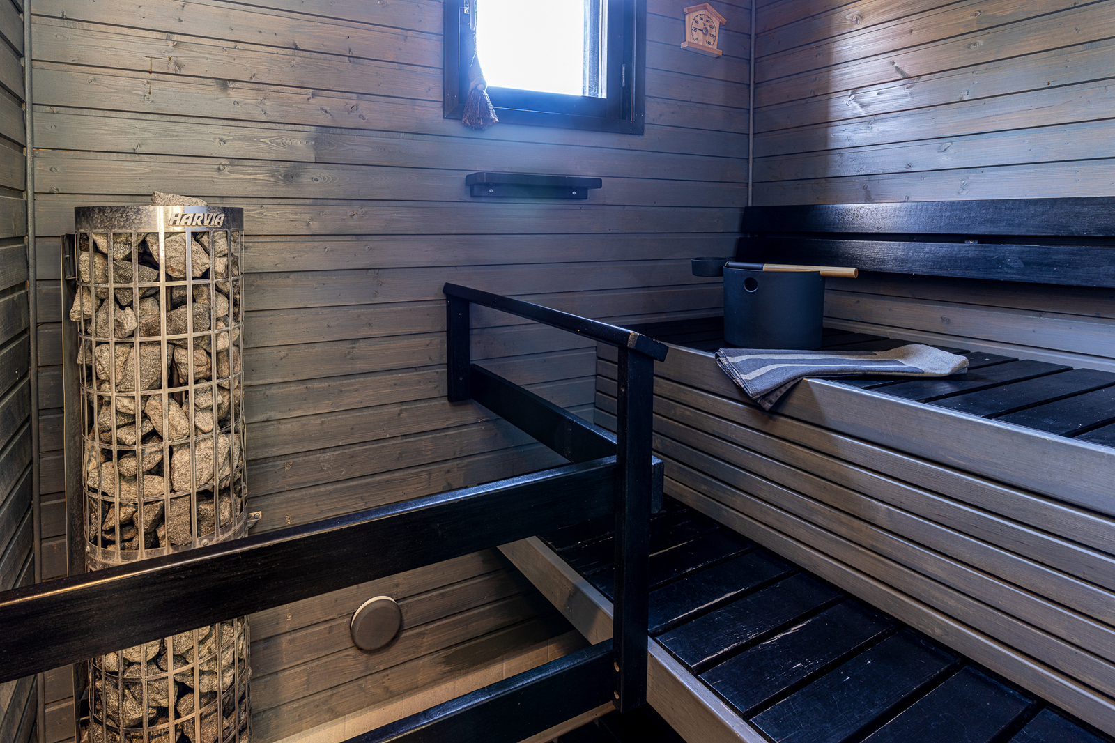 | Saunan kuvaus | Seinät (puu), lattiat (laatta), Sähkökiuas |