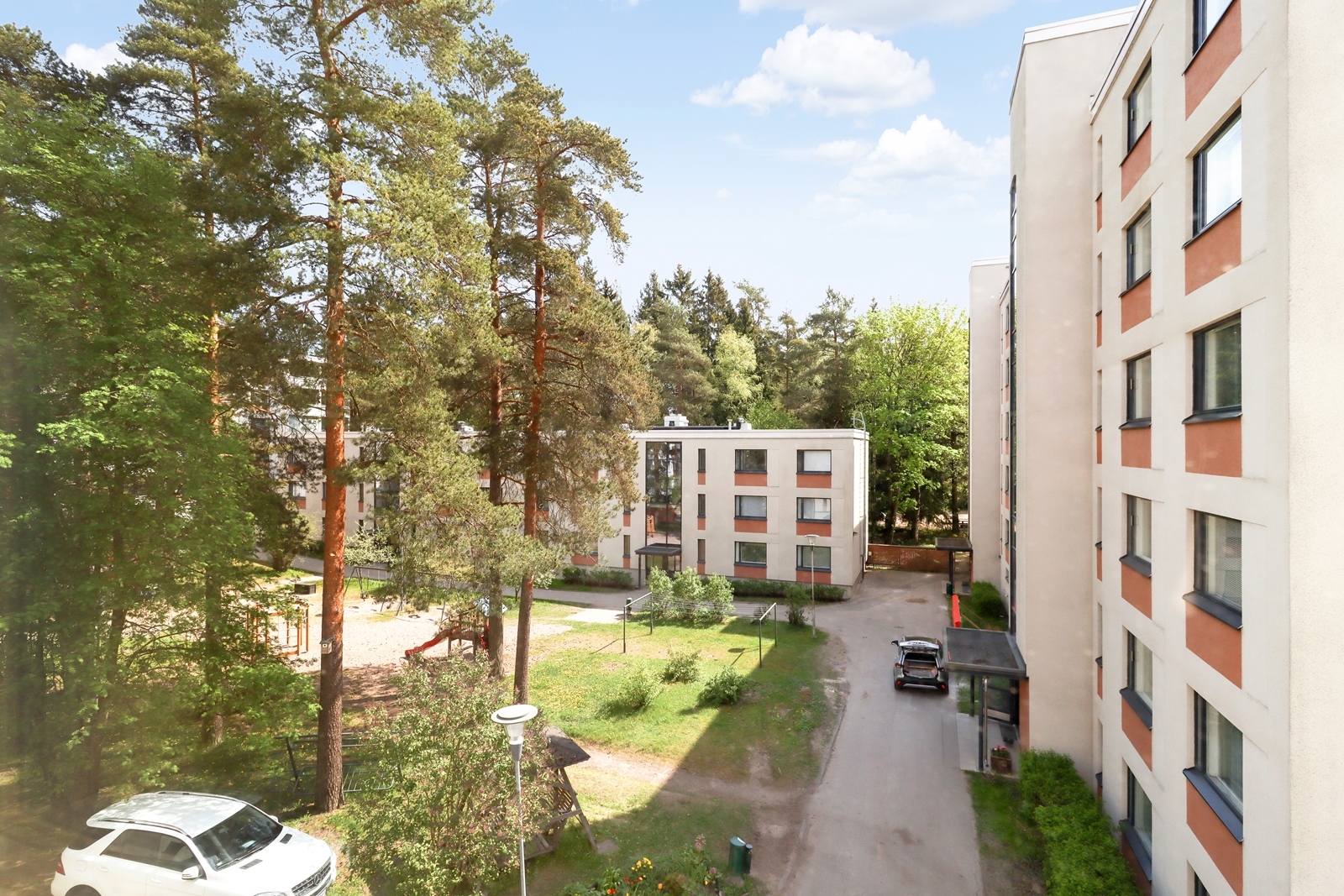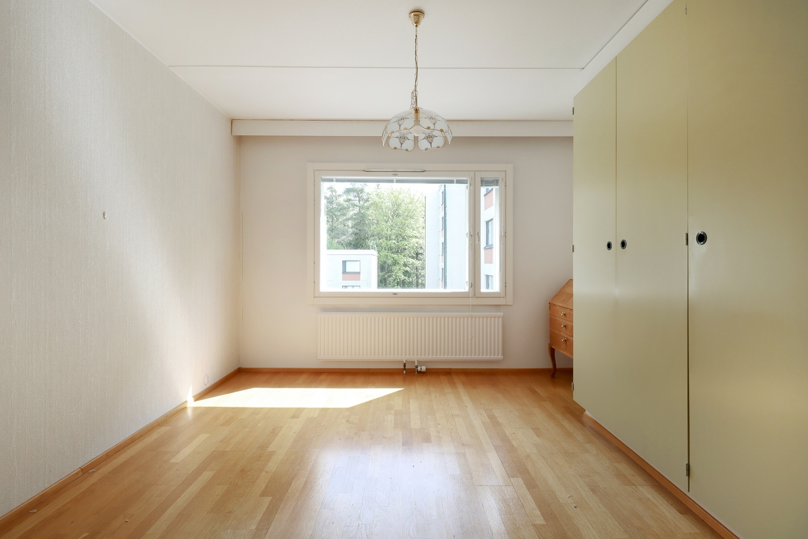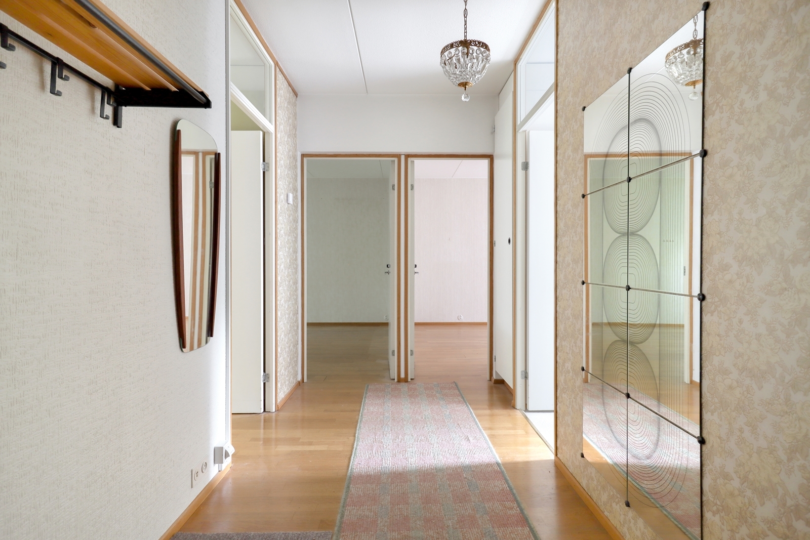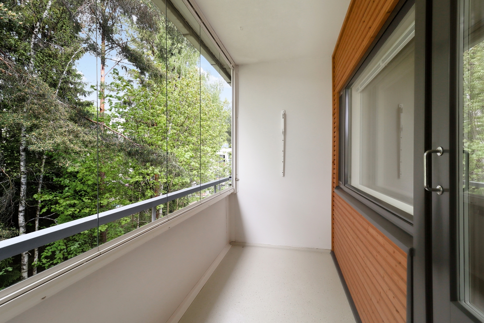 Toimivan pohjan ansiosta, sekä tilavat makuuhuoneet, että olohuone on helppo sisustaa, ja perinteiseen tilavaan keittiöön mahtuu hyvin erillinen ruokapöytä. Asunnosta löytyy tarvittaessa tilaa varmasti myös työsopelle ja kokonaisuuden kruunaa lasitettu parveke. Väljästi rakennettujen talojen vuoksi näkymä on mukavan puistomainen.
