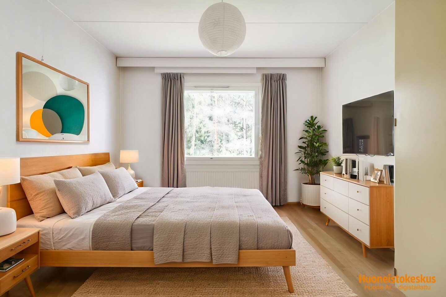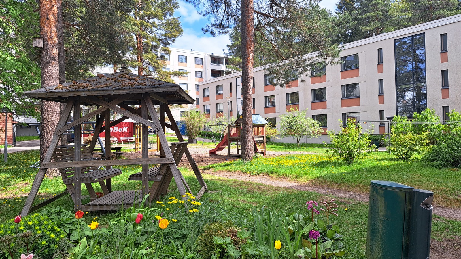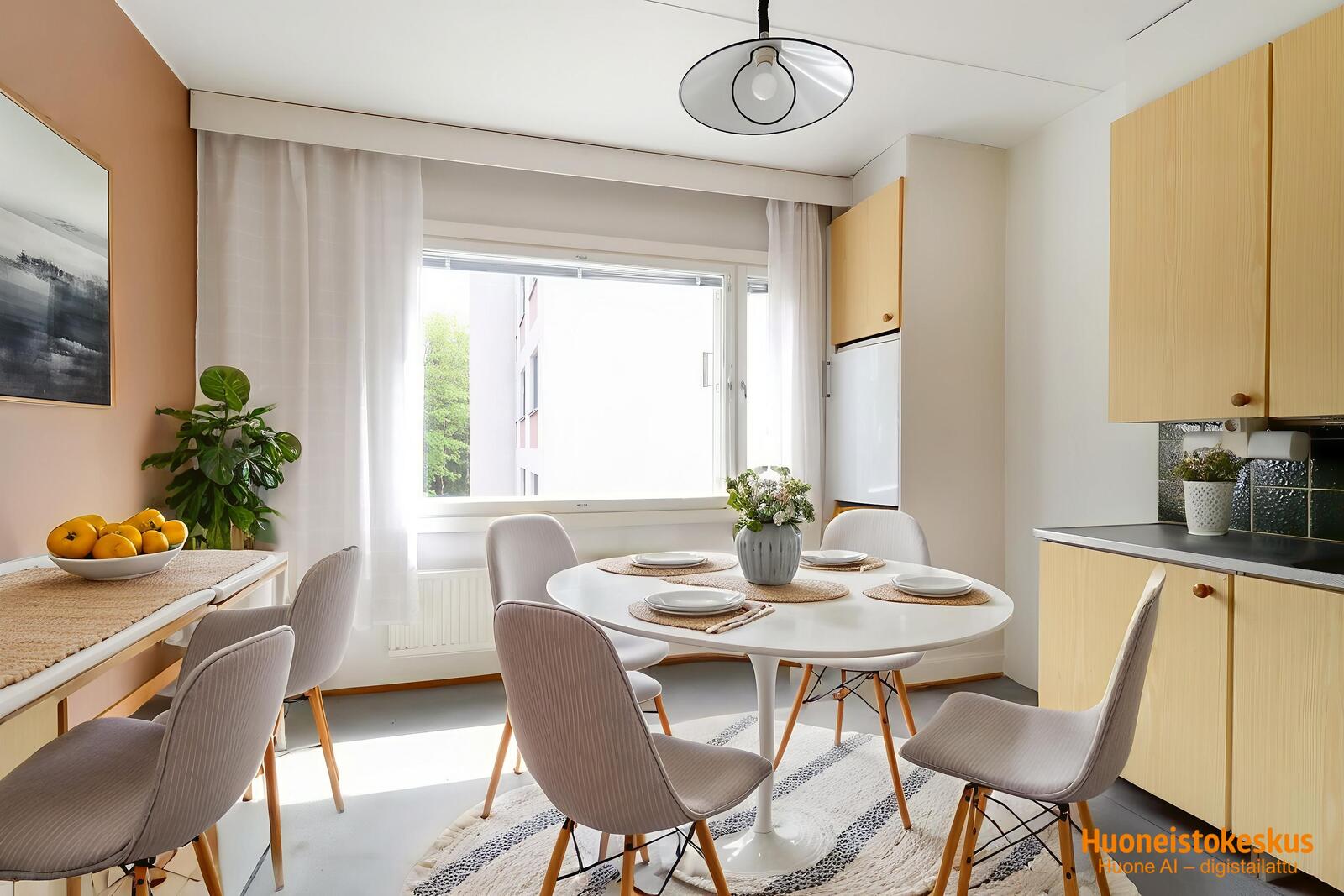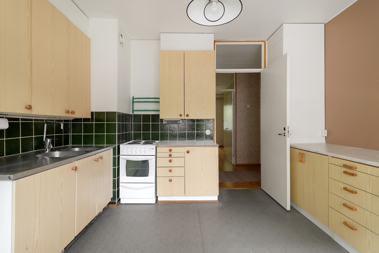 Toimivan pohjan ansiosta, sekä tilavat makuuhuoneet, että olohuone on helppo sisustaa, ja perinteiseen tilavaan keittiöön mahtuu hyvin erillinen ruokapöytä. Asunnosta löytyy tarvittaessa tilaa varmasti myös työsopelle ja kokonaisuuden kruunaa lasitettu parveke. Väljästi rakennettujen talojen vuoksi näkymä on mukavan puistomainen.