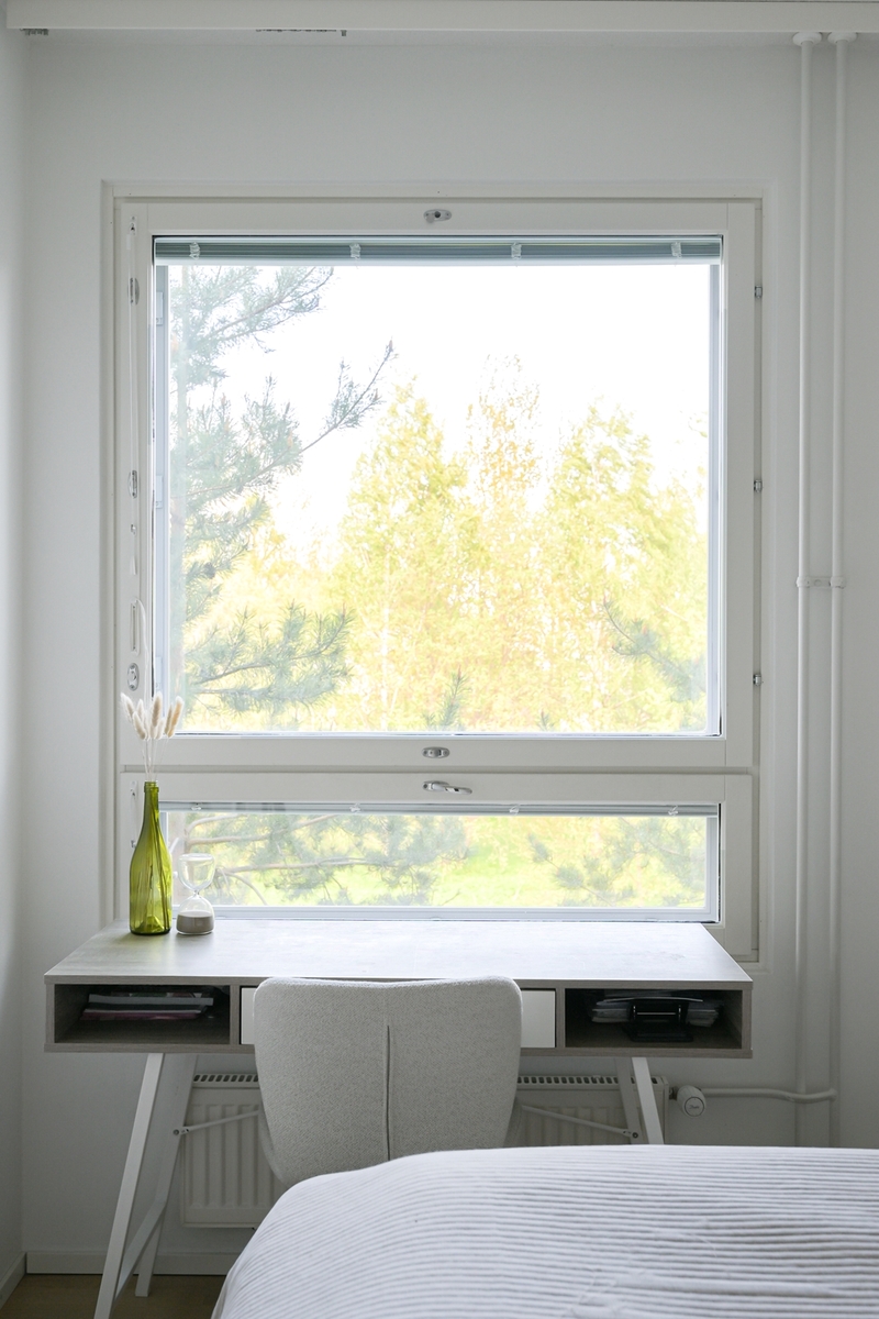 Valoisat tilat, moderni ilme ja laadukkaat pintamateriaalit luovat kodikkaan ja raikkaan tunnelman heti sisään astuttaessa.