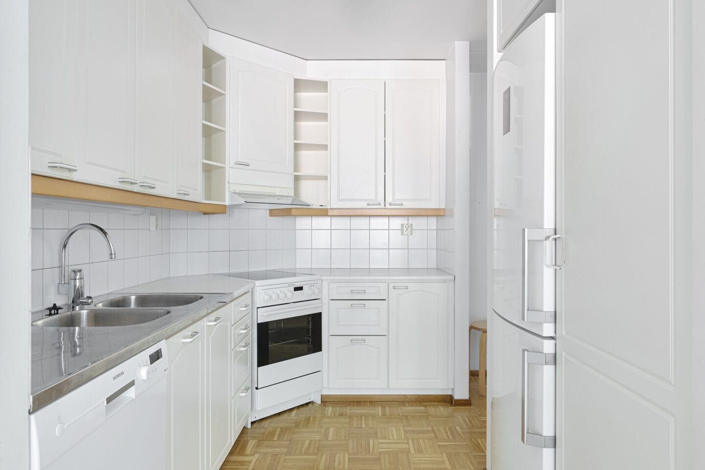 | Keittiön kuvaus | Liesi (Keraaminen liesi), seinät (tapetti), lattiat (parketti), jääkaappipakastin, liesi, liesituuletin ja astianpesukone |