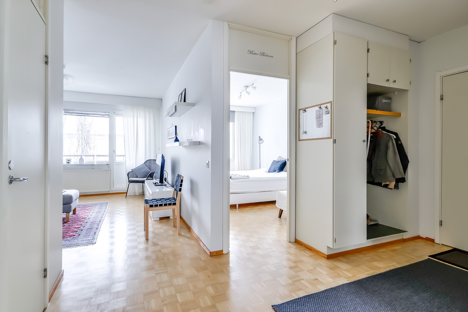 Vaaleat pinnat , tilavat huoneet, erillinen vaatehuone. Taloyhtiössä ei suunnitteilla isoja remontteja. Kahdet raput huoneistoon.