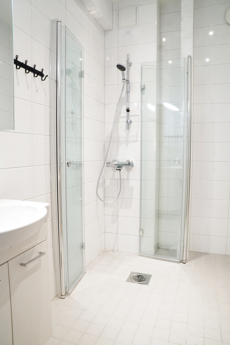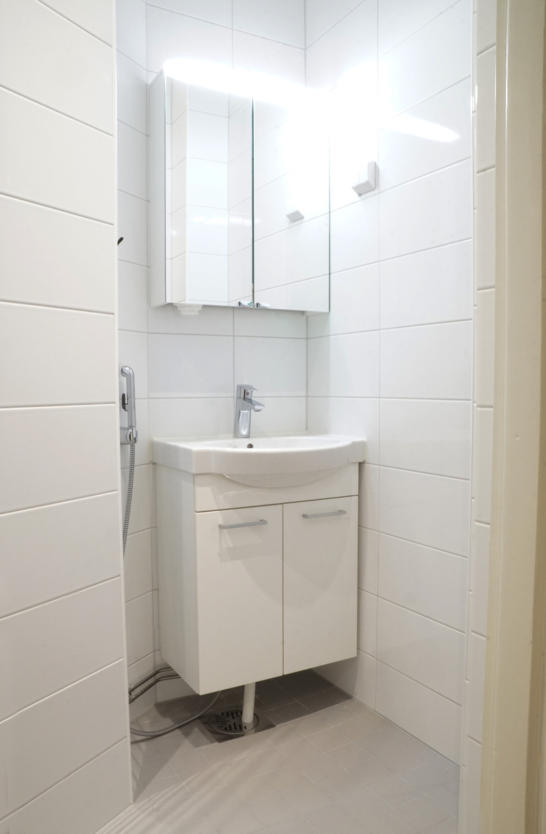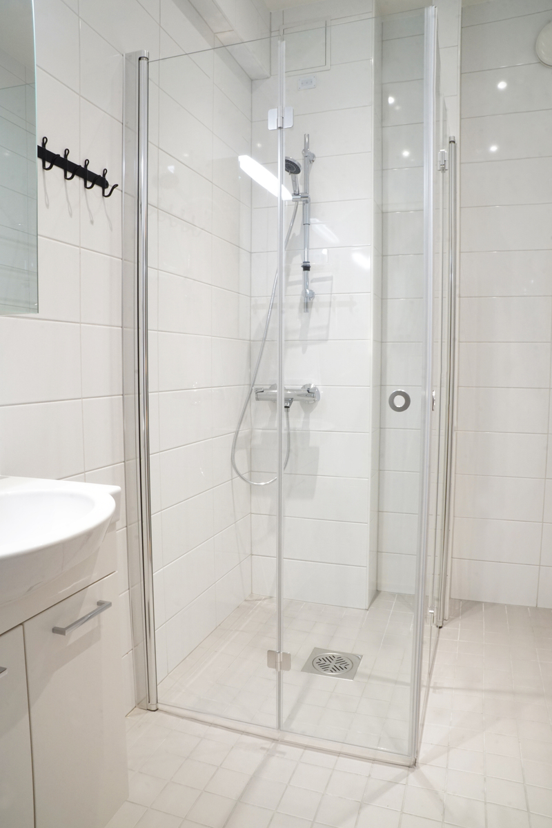 | Kylpyhuoneen kuvaus | Suihku, lattialämmitys, peilikaappi, pesukoneliitäntä, suihkuseinä ja kiinteät valaisimet, seinät (kaakeli), Kph ja wc uusittu perinteisessä putkiremontissa sekä kalusteet ja sähköt uusittu, ei ole käytetty remontin jälkeen. Vesikiertopyyhekuivain. Seinät kaakelia, lattiat klinkkeriä (läpivärjätty). Paikka löytyy myös kuivausrummulle (pesutorni). Tulvakaivo. |