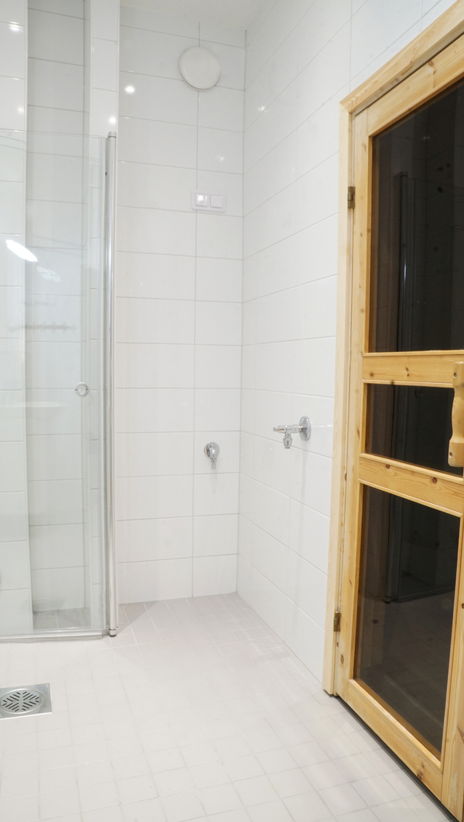 | Saunan kuvaus | Seinät (puu), lattiat (laatta), Sähkökiuas, Vuolukivikiuas (sähkö). Saunassa valokuituvalaistus. |