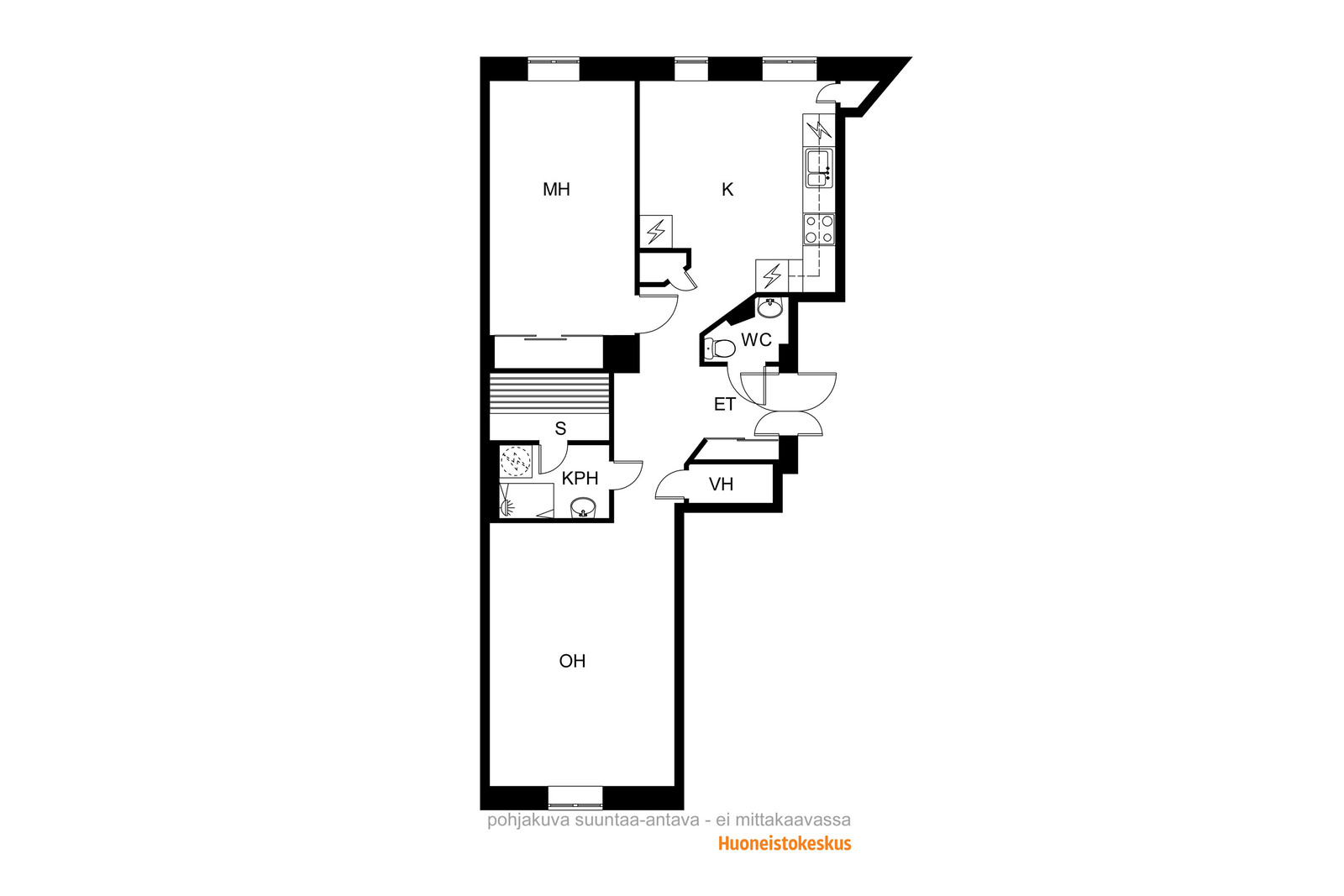 | Huoneistoselitelmä | 2-3 h, k, kph, s, wc, eteinen/halli, vh ((2 h + k + palv. h (yj:n mukaan)) |