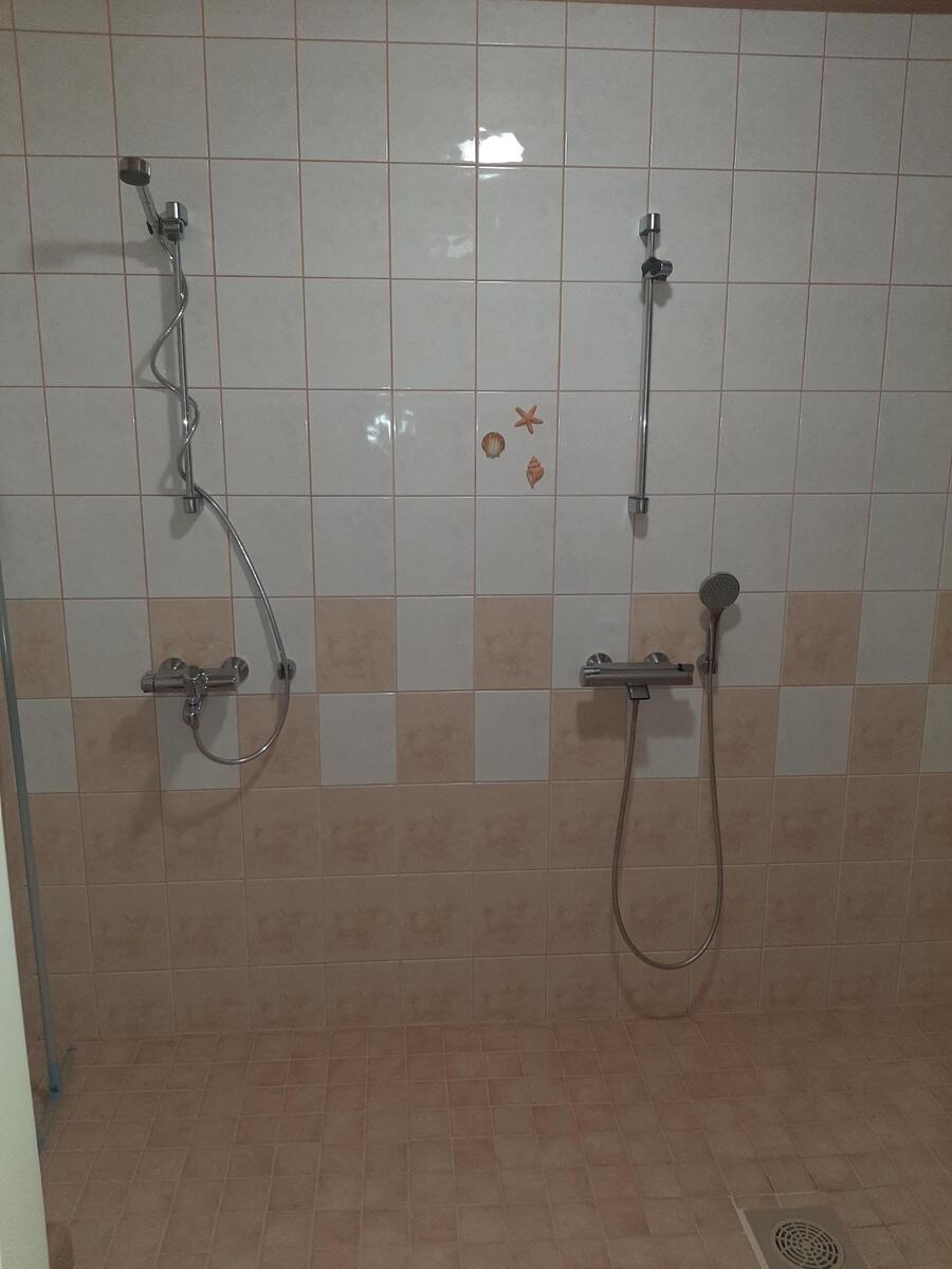 Lattialämmitys, suihku ja kiinteät valaisimet, seinät (kaakeli), lattiat (laatta) |