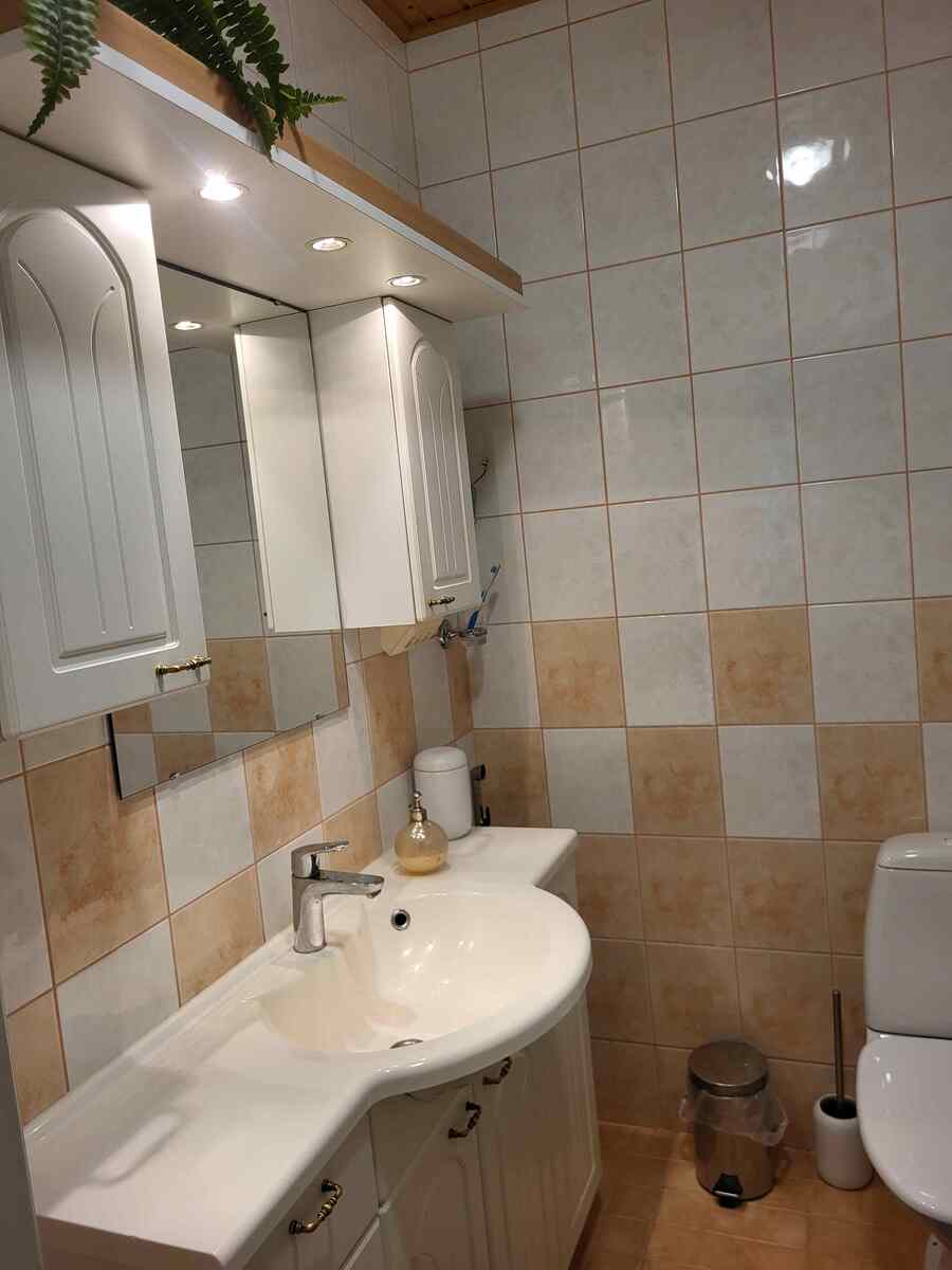 Peilikaappi, lattiakaivo, bidee-suihku ja lattialämmitys, seinät (Kaakeli), lattiat (Laatta) |
