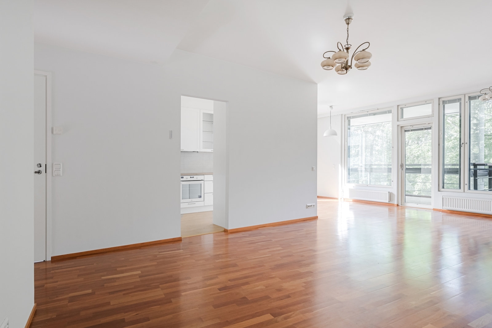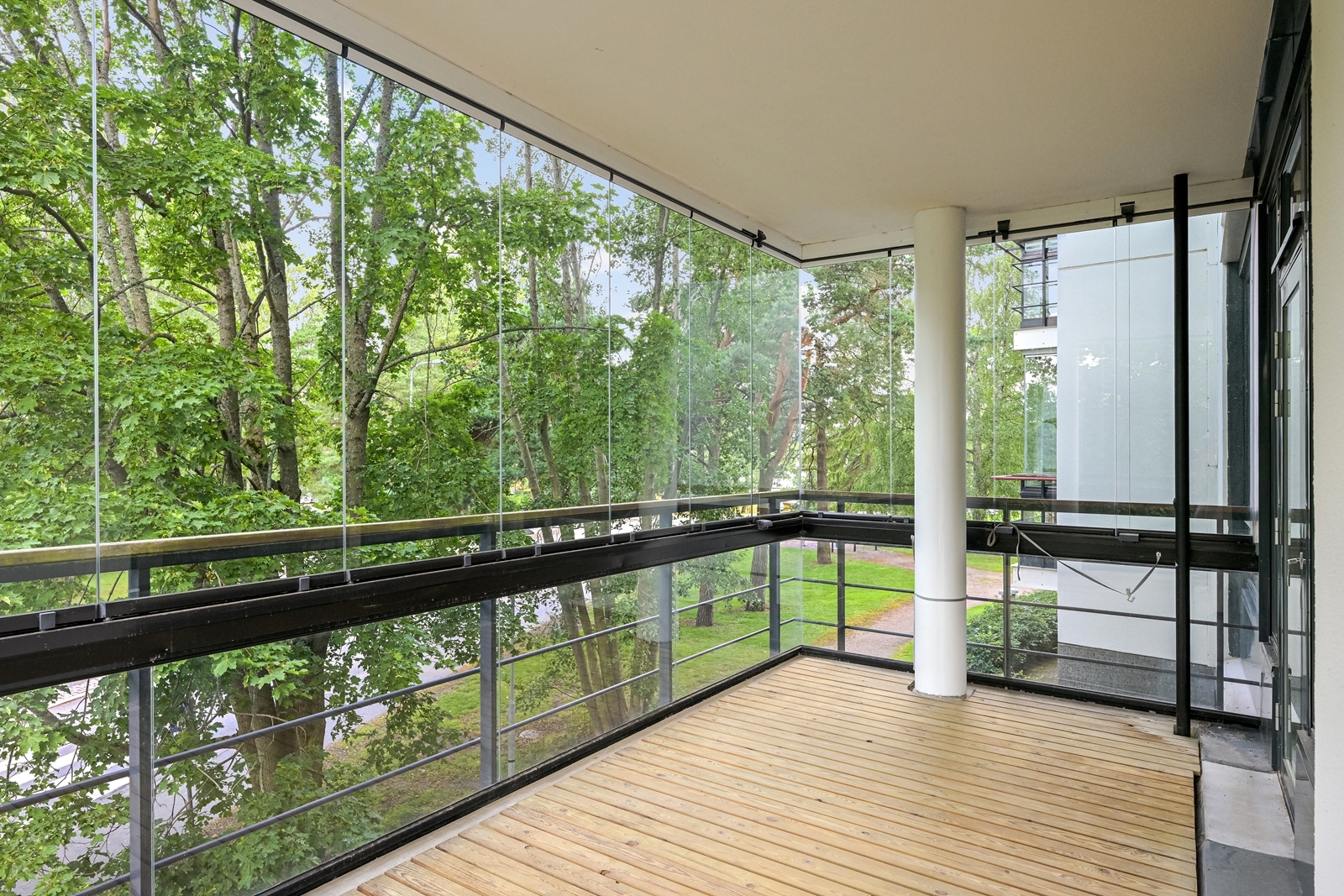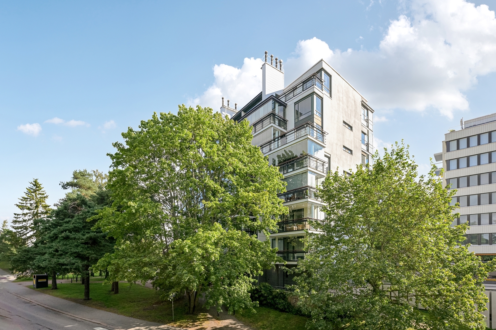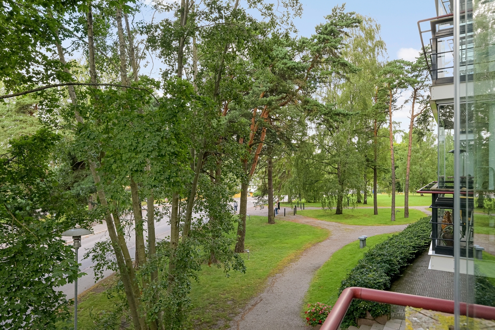 Arvostettu osoite Merikannontiellä, valoisa päätyhuoneisto, joka on heti vapaa. Kesäkeitaaksi kaksi lasitettua parveketta, pienempi sisäpihan puolella itään ja isompi olohuoneen yhteydessä merelle päin. Ihanan puistoiset näkymät kaikista ikkunoista ja parvekkeilta. Huonekorkeus noin 2,75 m.