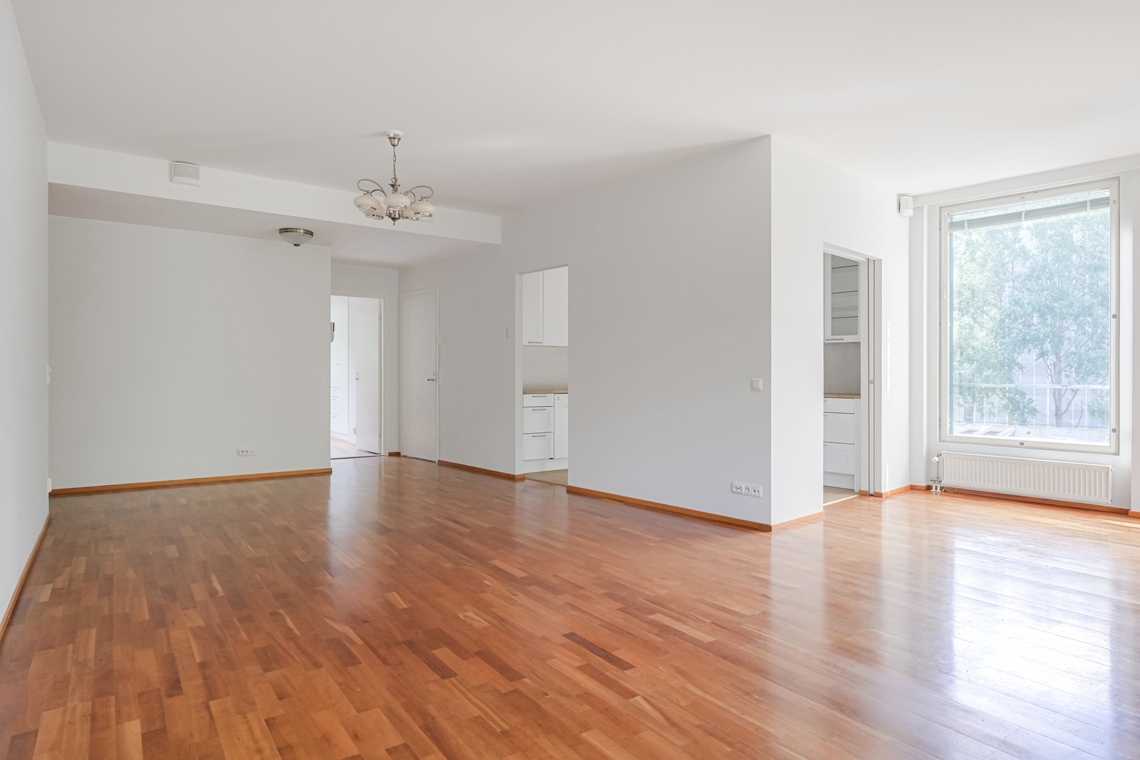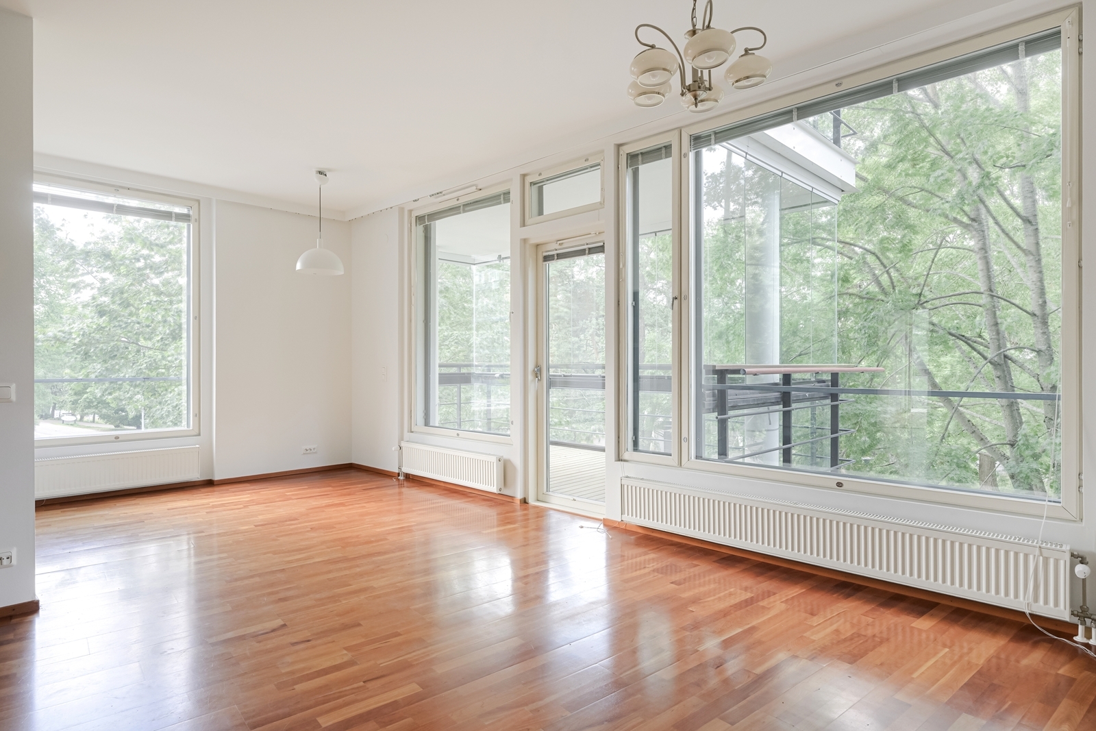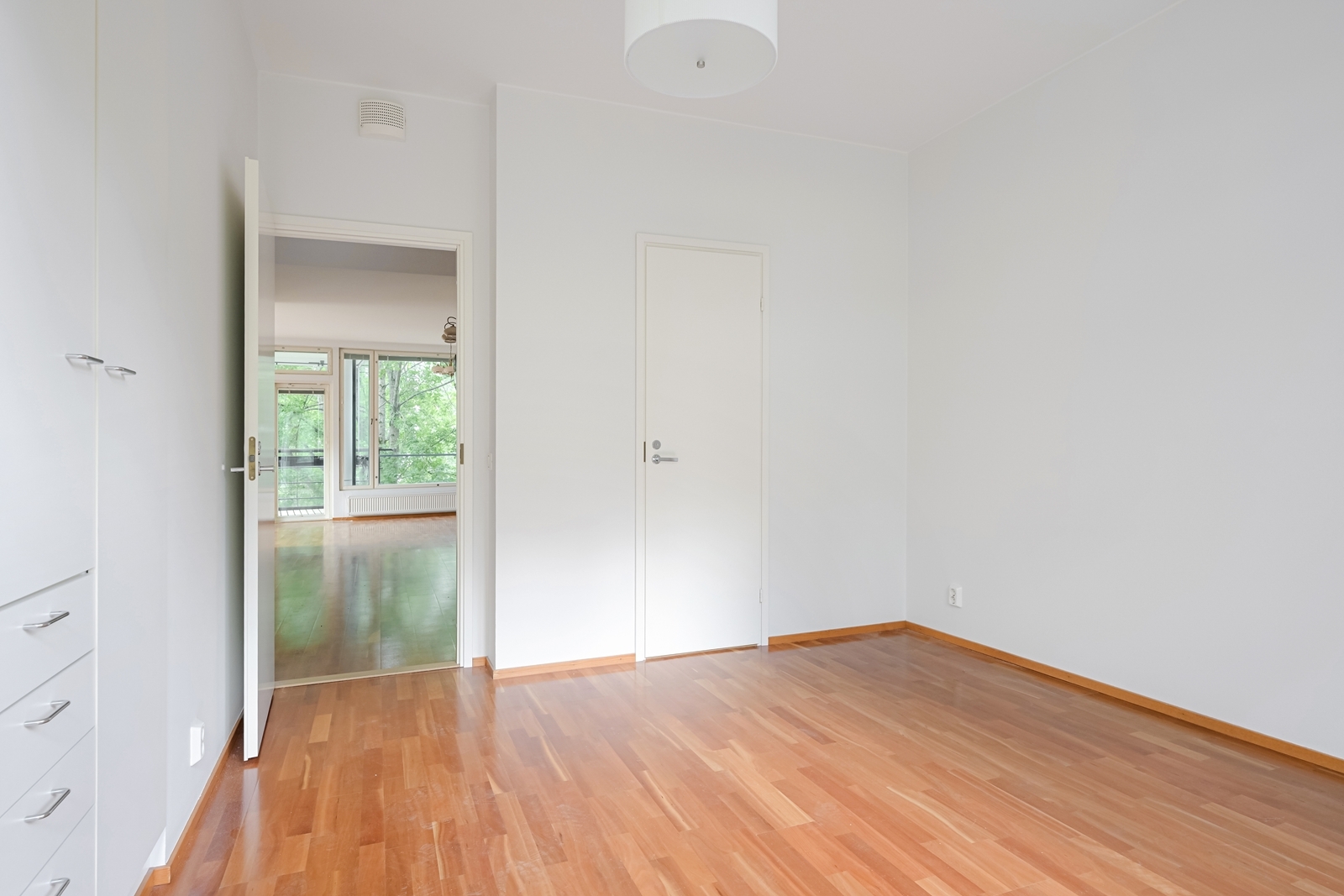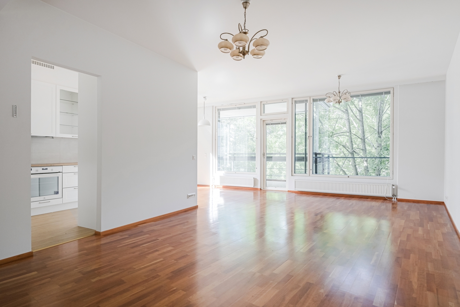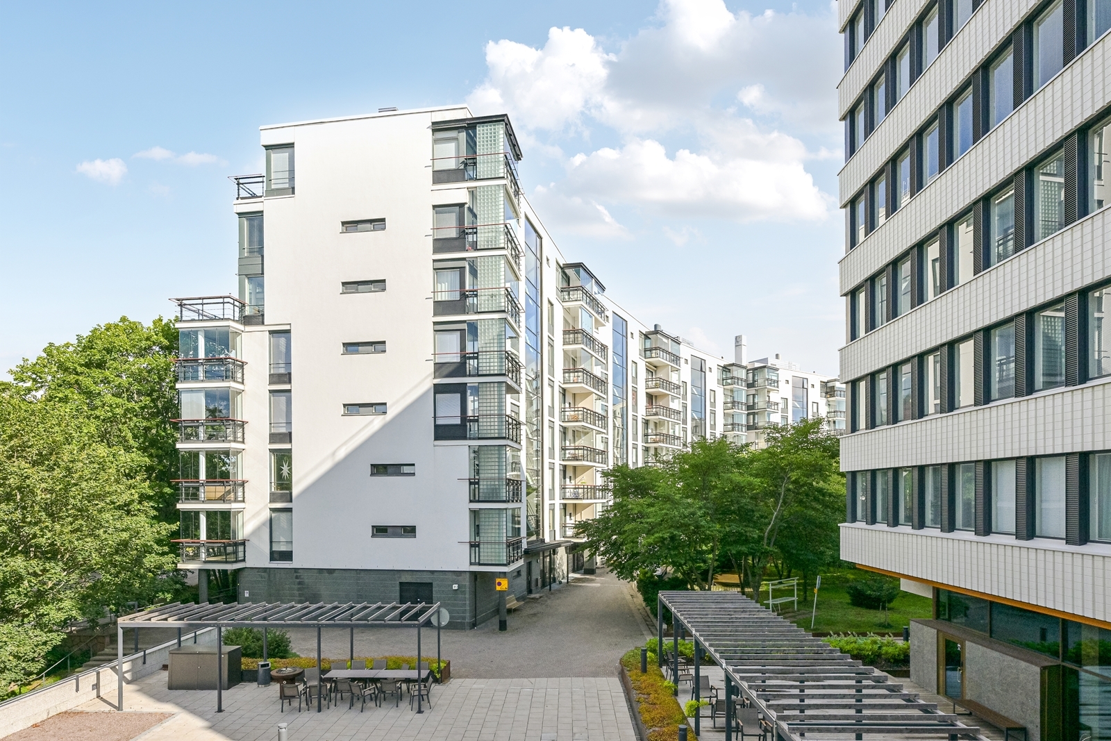 Arvostettu osoite Merikannontiellä, valoisa päätyhuoneisto, joka on heti vapaa. Kesäkeitaaksi kaksi lasitettua parveketta, pienempi sisäpihan puolella itään ja isompi olohuoneen yhteydessä merelle päin. Ihanan puistoiset näkymät kaikista ikkunoista ja parvekkeilta. Huonekorkeus noin 2,75 m.