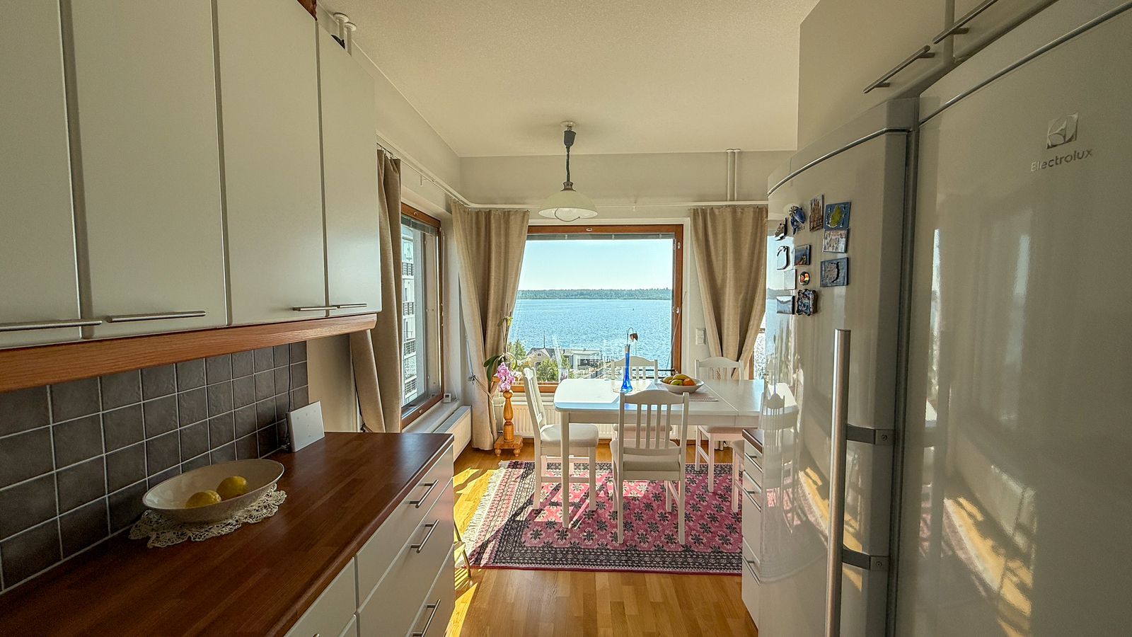 Liesi (Keraaminen liesi), lattiat (parketti), erillinen pakastin, jääkaappi, astianpesukone ja kiinteät valaisimet, liesituuletin / hormi |