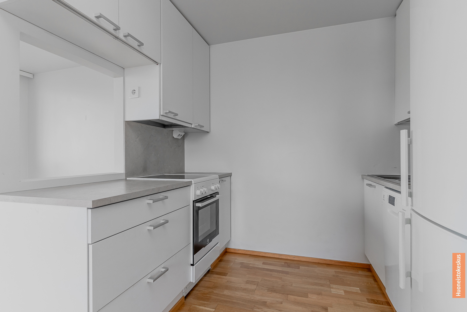 | Keittiön kuvaus | Liesi (Keraaminen liesi), työtasot (laminaatti), seinät (maali), lattiat (parketti), jääkaappipakastin, astianpesukone ja liesituuletin |