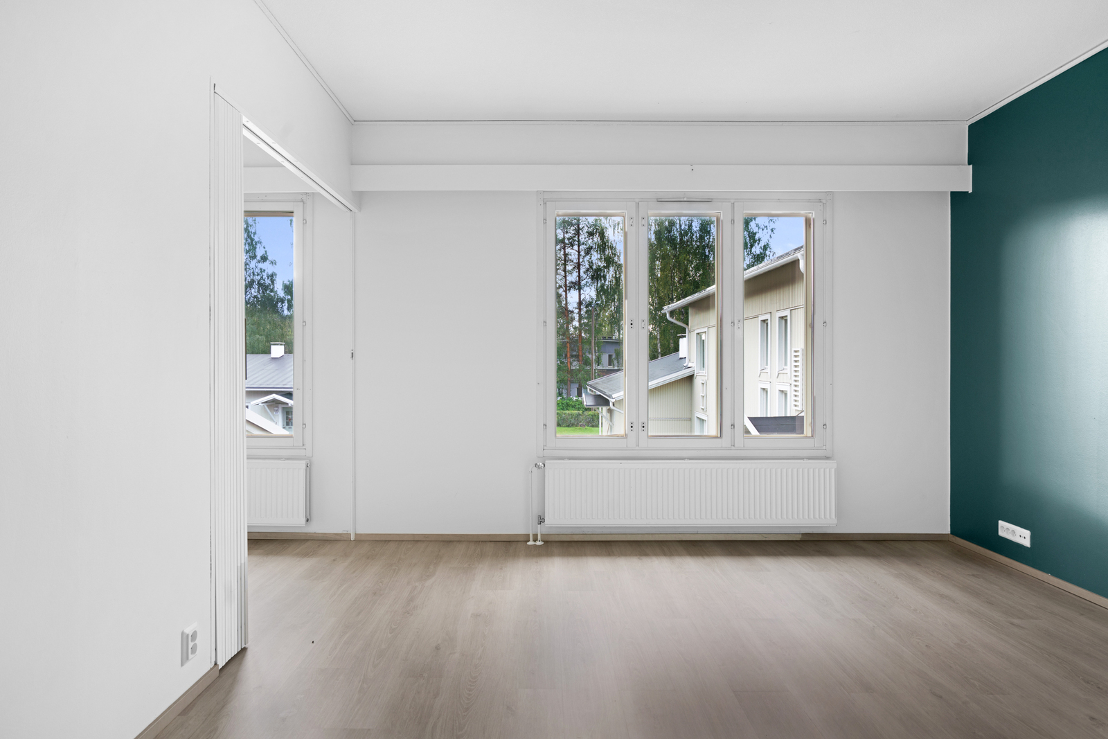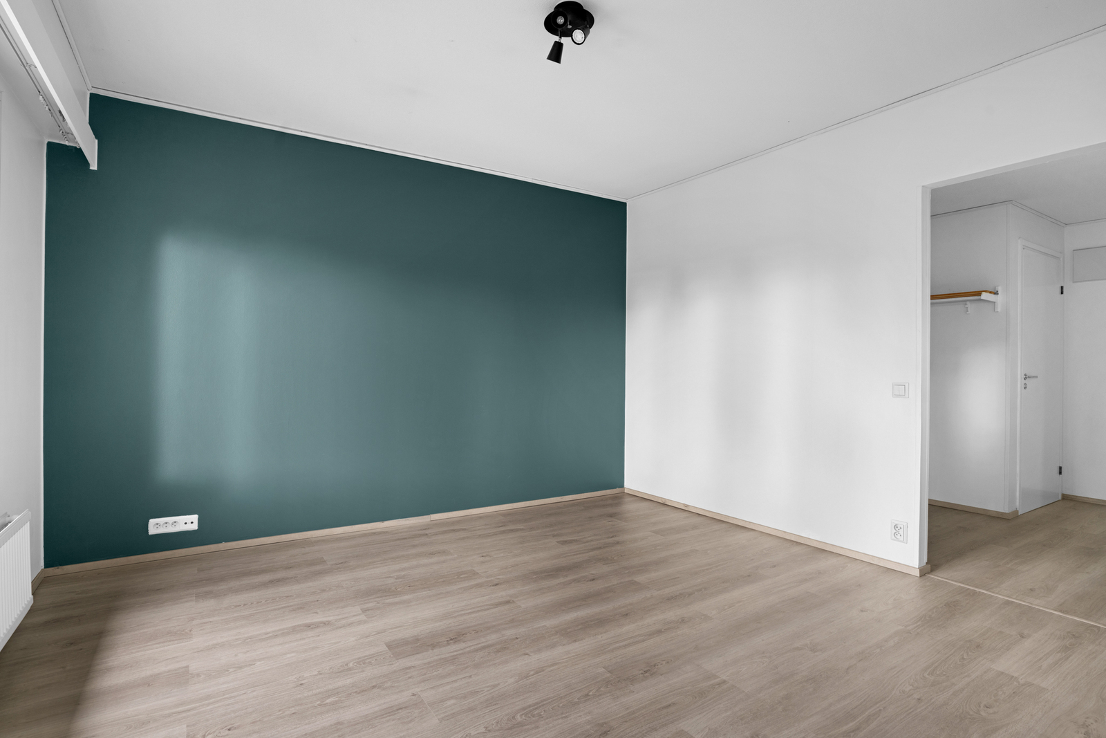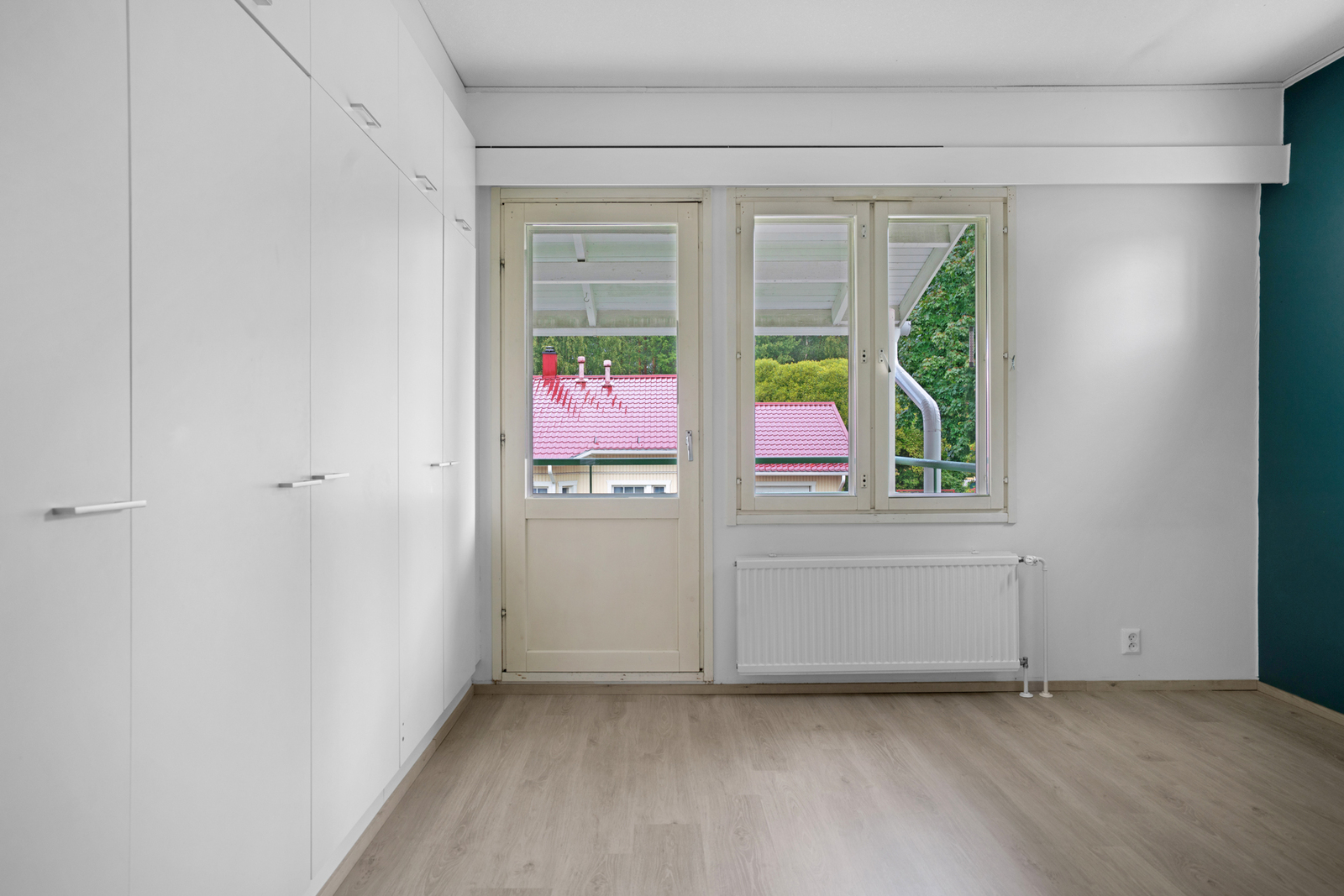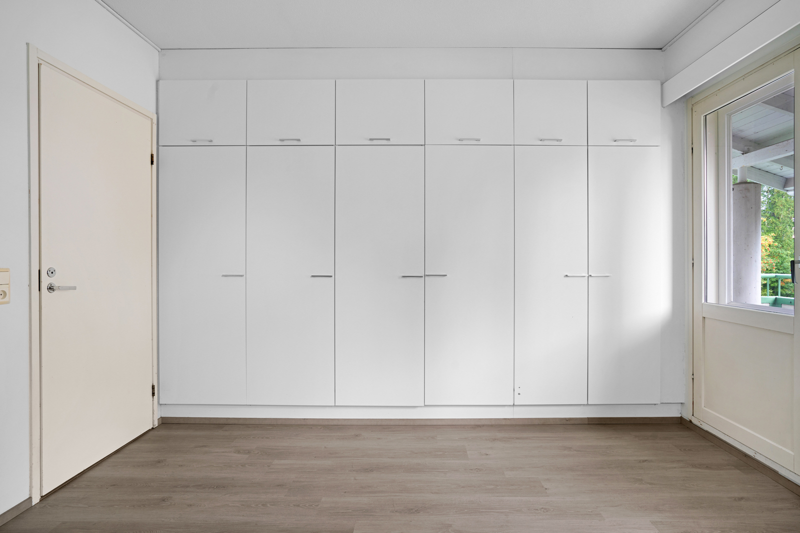 Lukumäärä: 1, seinät (maali), lattiat (laminaatti), Makuuhuoneessa kiintokaapistot molemmin puolin ikkunaa sekä käynti parvekkeelle. |