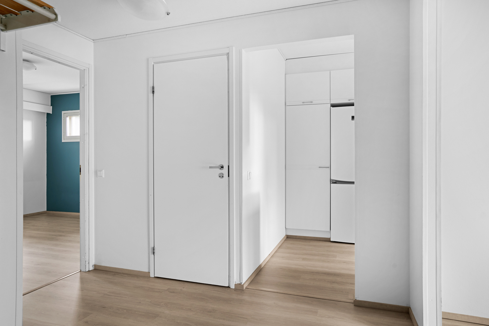 Seinät (maali), lattiat (laminaatti), Olohuoneesta käynti keittiötilaan. |