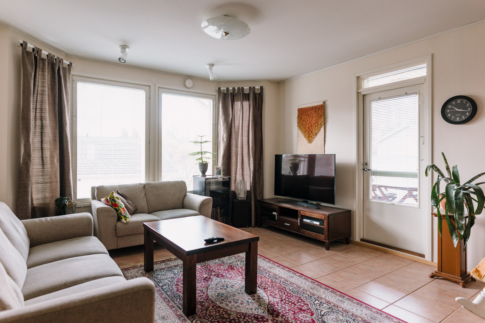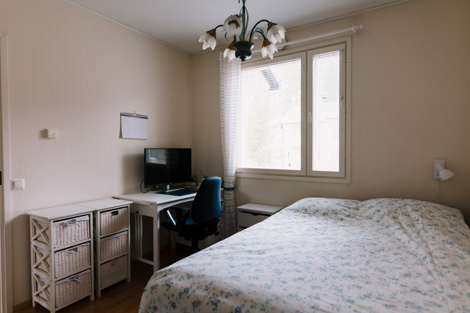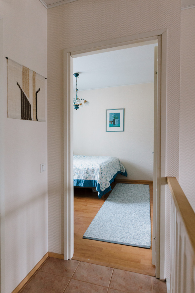 | Makuuhuoneen kuvaus | Lukumäärä: 3, seinät (lasikuitutapetti), lattiat (laminaatti ja laatta), alakerran makuuhuoneessa laattalattia, yläkerran makuuhuoneissa laminaattilattiat. |