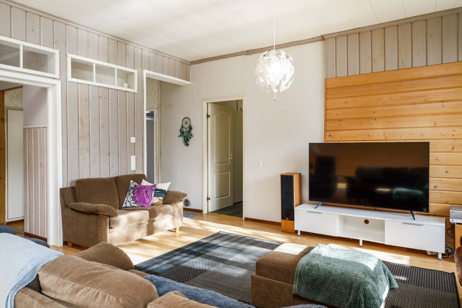 Talon ytimessä on suuri ja avara olohuone, jonka korkea katto ja suuret ikkunat tuovat avaruutta ja valoa, ja luovat kodikkaan ja viihtyisän ilmapiirin. Kylpyhuone on remontoitu -21. Talo on lisäksi varustettu tilavalla verstaalla, joka on liitettynä talon yhteyteen. Verstasta voi hyödyntää niin harrastekäyttöön kuin esimerkiksi yrittäjille, jotka tarvitsevat tilaa työskentelyyn.