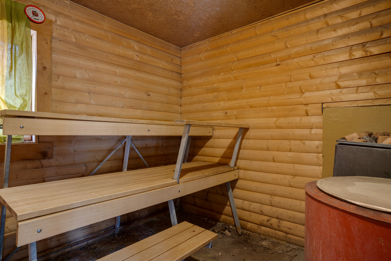 | Saunan kuvaus | Seinät (puu), lattiat (betoni), Puukiuas, Sauna sijaitsee piharakennuksessa. |