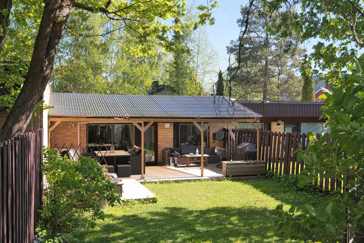 Hieno, iso, suojaisa ja aidattu oma takapiha, jollaisia aika vähän näin lähellä keskustaa.