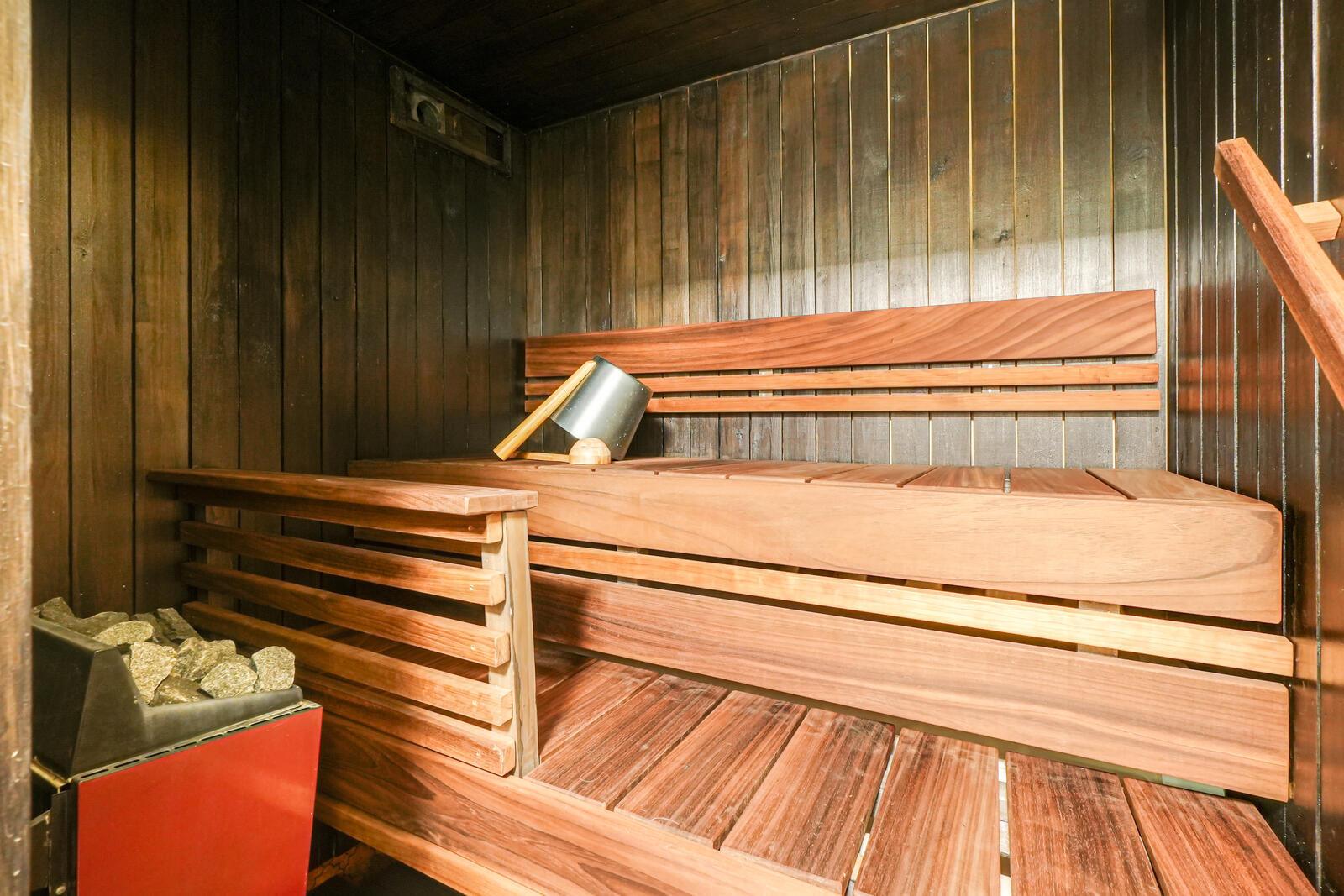 Seinät (puu), lattiat (muovi), Sähkökiuas, Sauna uusittu 2022. |