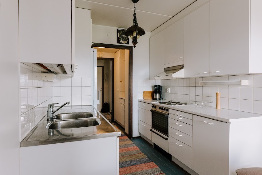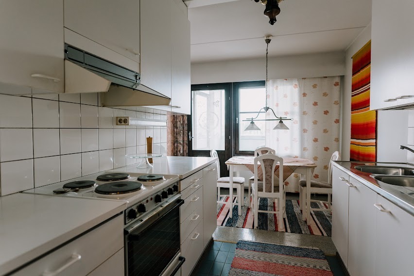 | Keittiön kuvaus | Liesi (sähköliesi), seinät (maali), lattiat (laatta), jääkaappipakastin, liesituuletin, liesi ja pakastekaappi |