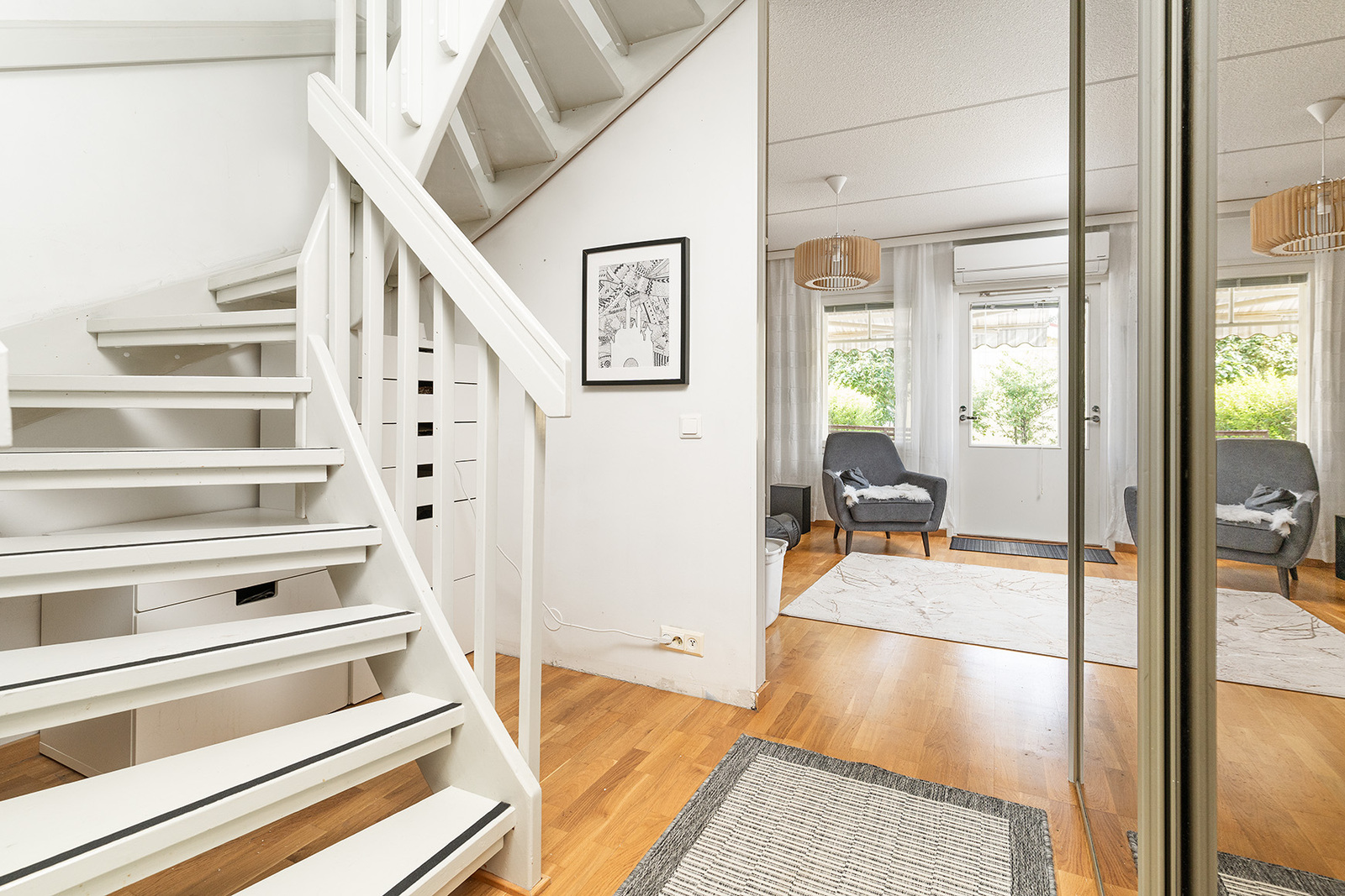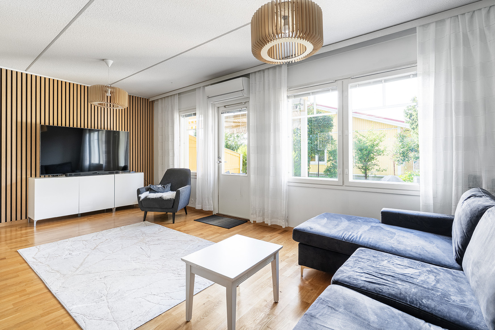 Tässä on tilaisuus asua viihtyisässä rivitalokodissa Lempäälän Kuljussa, jossa rauhallinen asuinalue ja erinomaiset palvelut kohtaavat. Tämä päätyasunto tarjoaa ikkunoita kolmeen ilmansuuntaan, mikä tuo runsaasti luonnonvaloa sisätiloihin ja avaa näkymät vehreille piha-alueille.