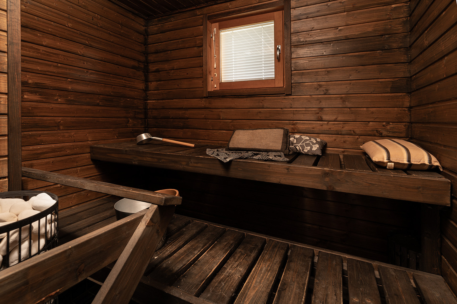 | Saunan kuvaus | Seinät (puu), lattiat (laatta), Sähkökiuas |