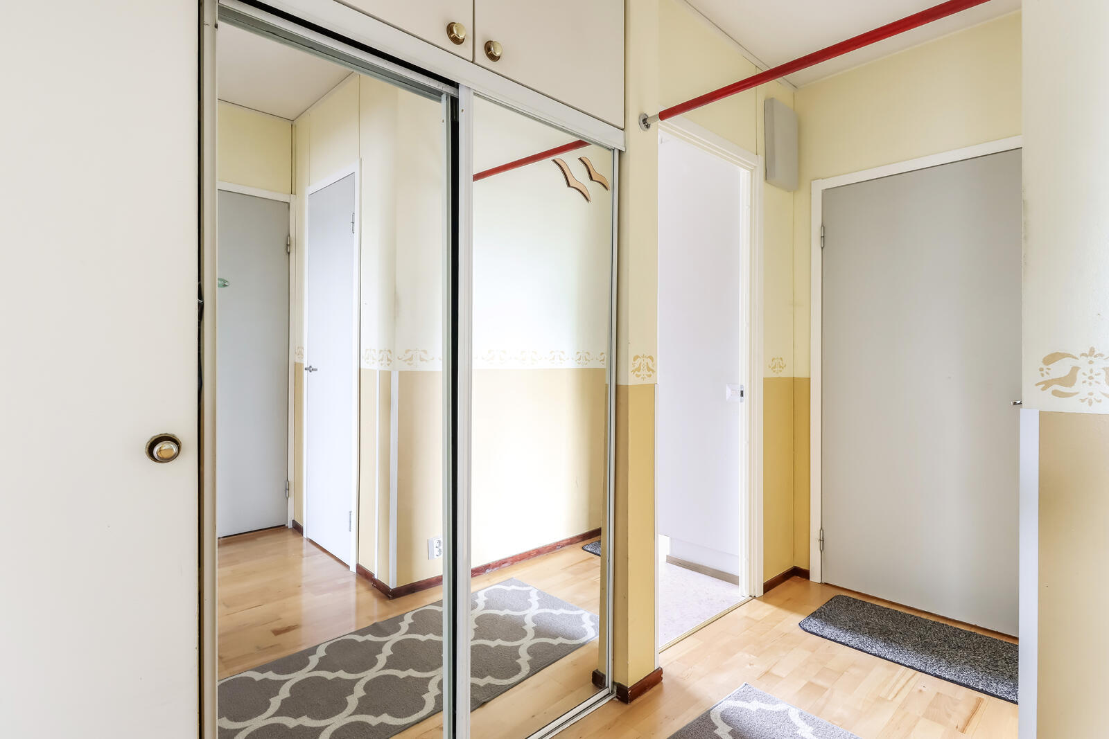 Seinät (tapetti), lattiat (parketti) |