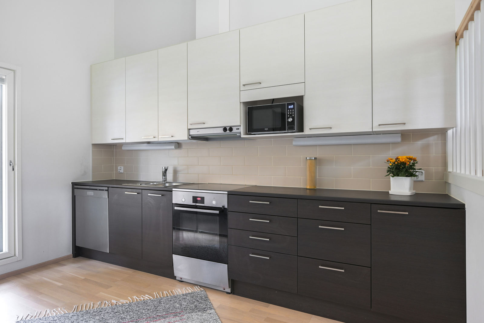 | Keittiön kuvaus | Liesi (Induktioliesi), työtasot (laminaatti), seinät (maali), lattiat (parketti), erillinen pakastin, liesituuletin, liesi, jääkaappi, astianpesukone ja kiinteät valaisimet |