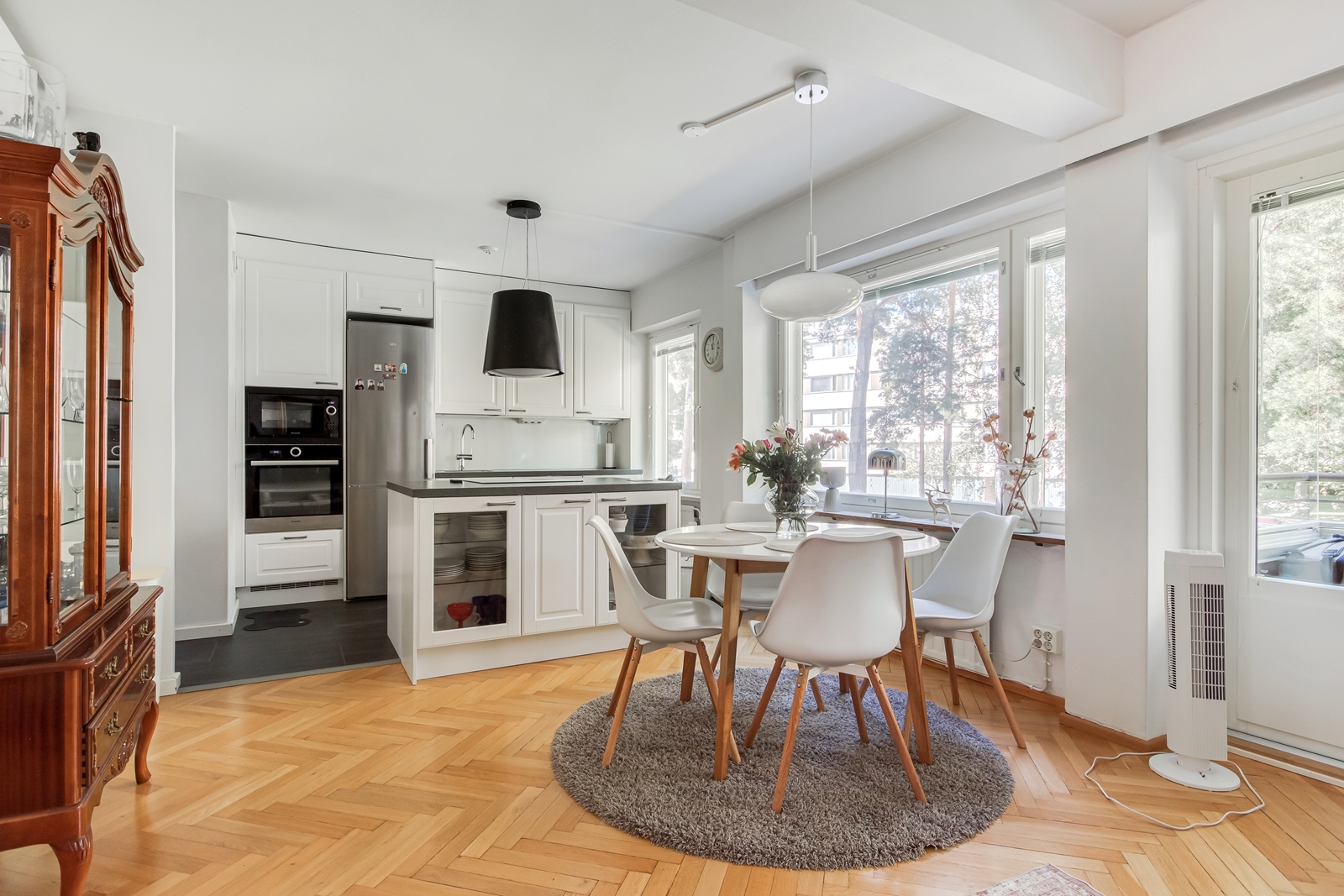 | Tehdyt remontit | 2018 Keittiöremontti; uusittu kaapistot, keittiön koneet ja laitteet, vesipisteet ja sähköpisteet. Keittiön ja olohuoneen kevyen väliseinän purku. Suoritettu asbestikartoitus. Keittiön lattiasta löytyi asbestia, korkkilaatta, liima+tasoite. Purkutyöt suoritettiin asbestipurkuna, Asbestikymppi Oy, Tarvittavat lattiapinnat korjattu. |