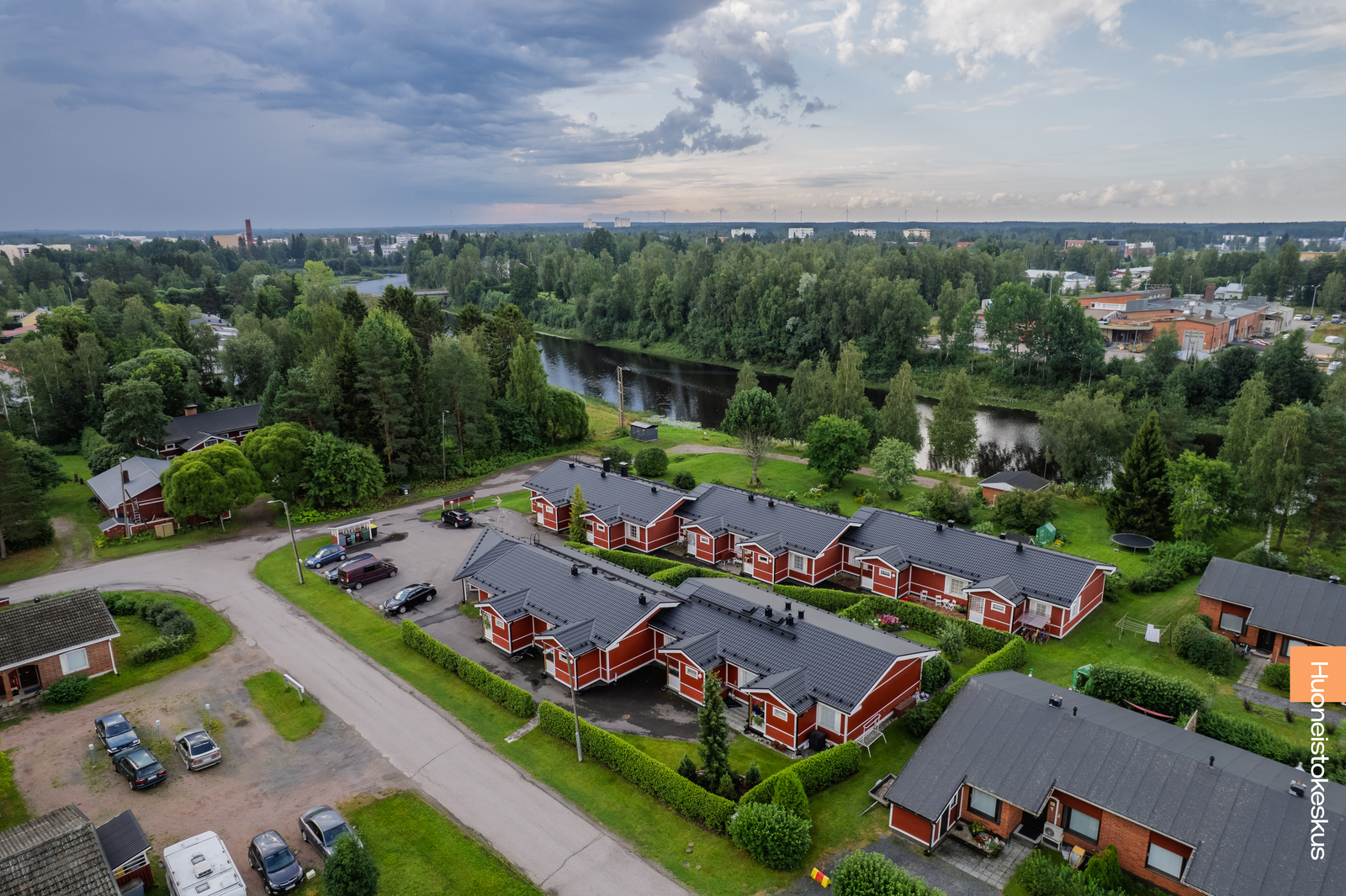 Ylivieskan Niemenrannassa myynnissä tilava rivitalohuoneisto jokimaisemalla.