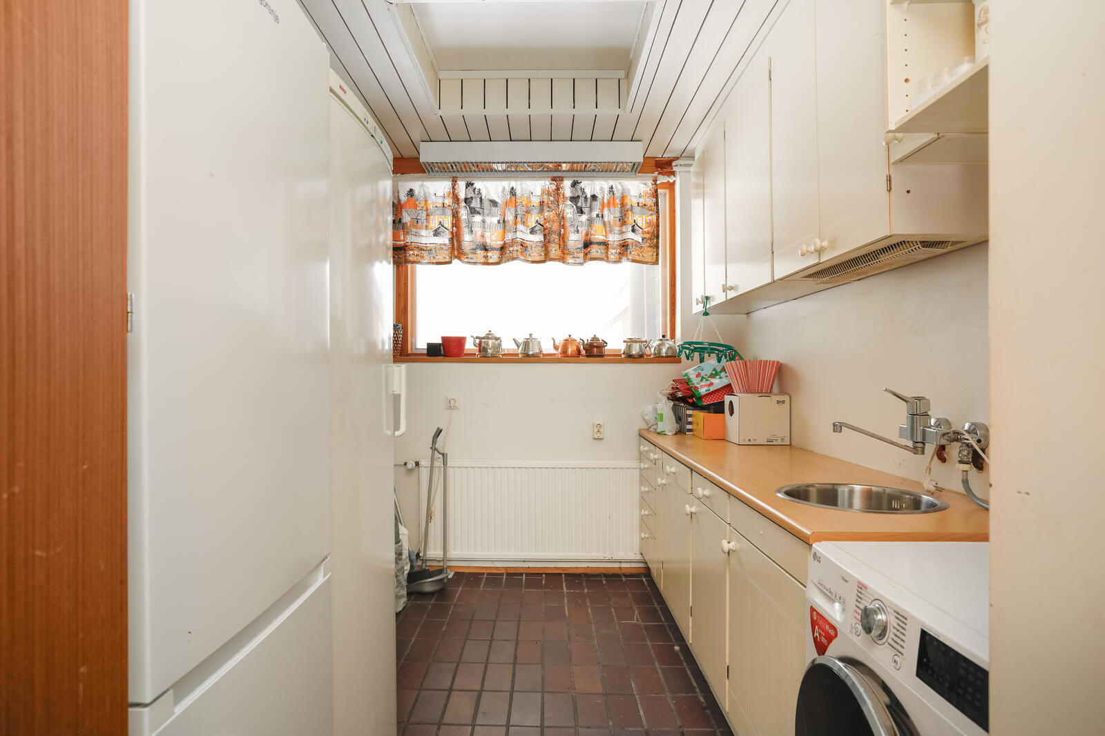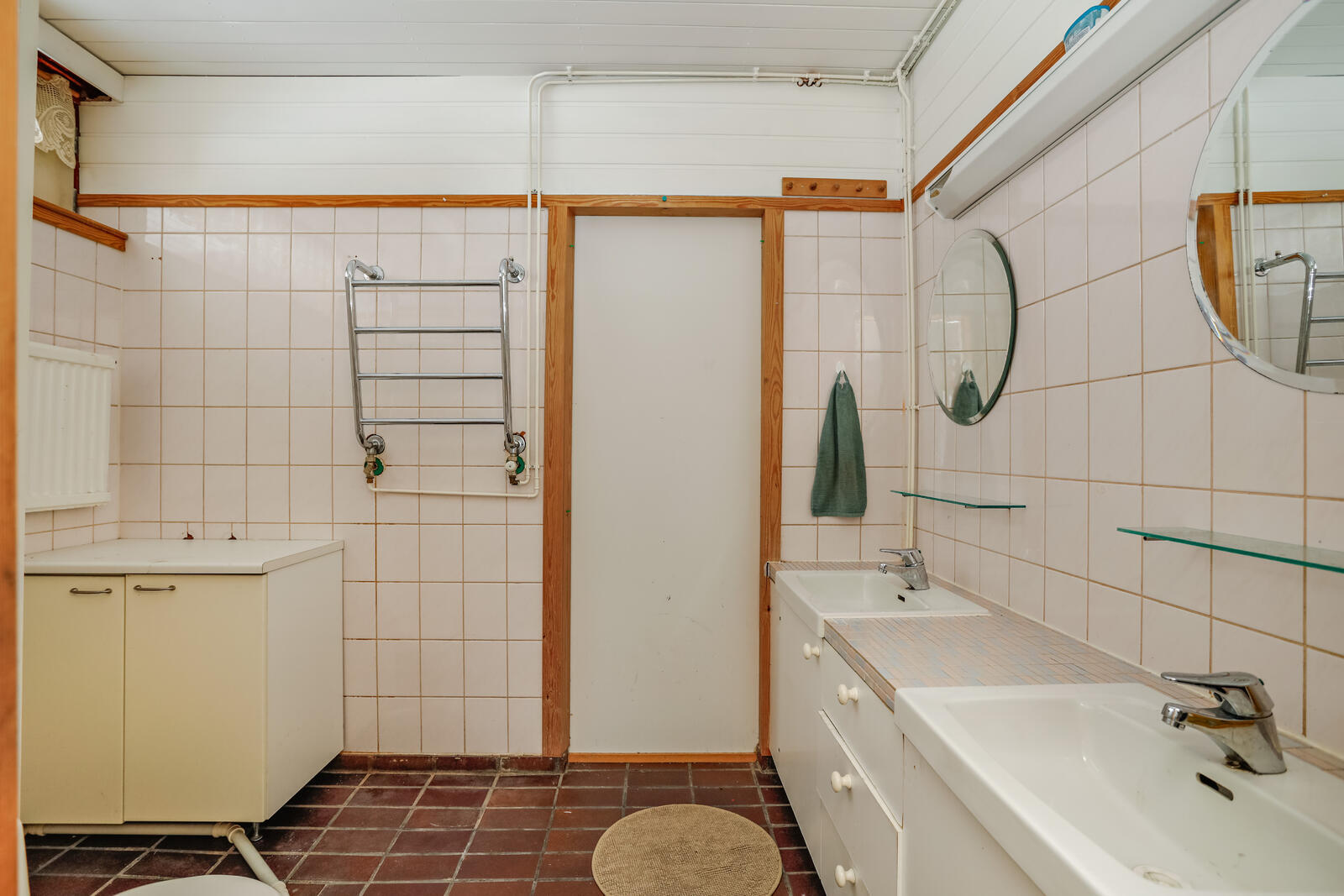 Pesukoneliitäntä, lattiat (laatta), seinät (maali) |
