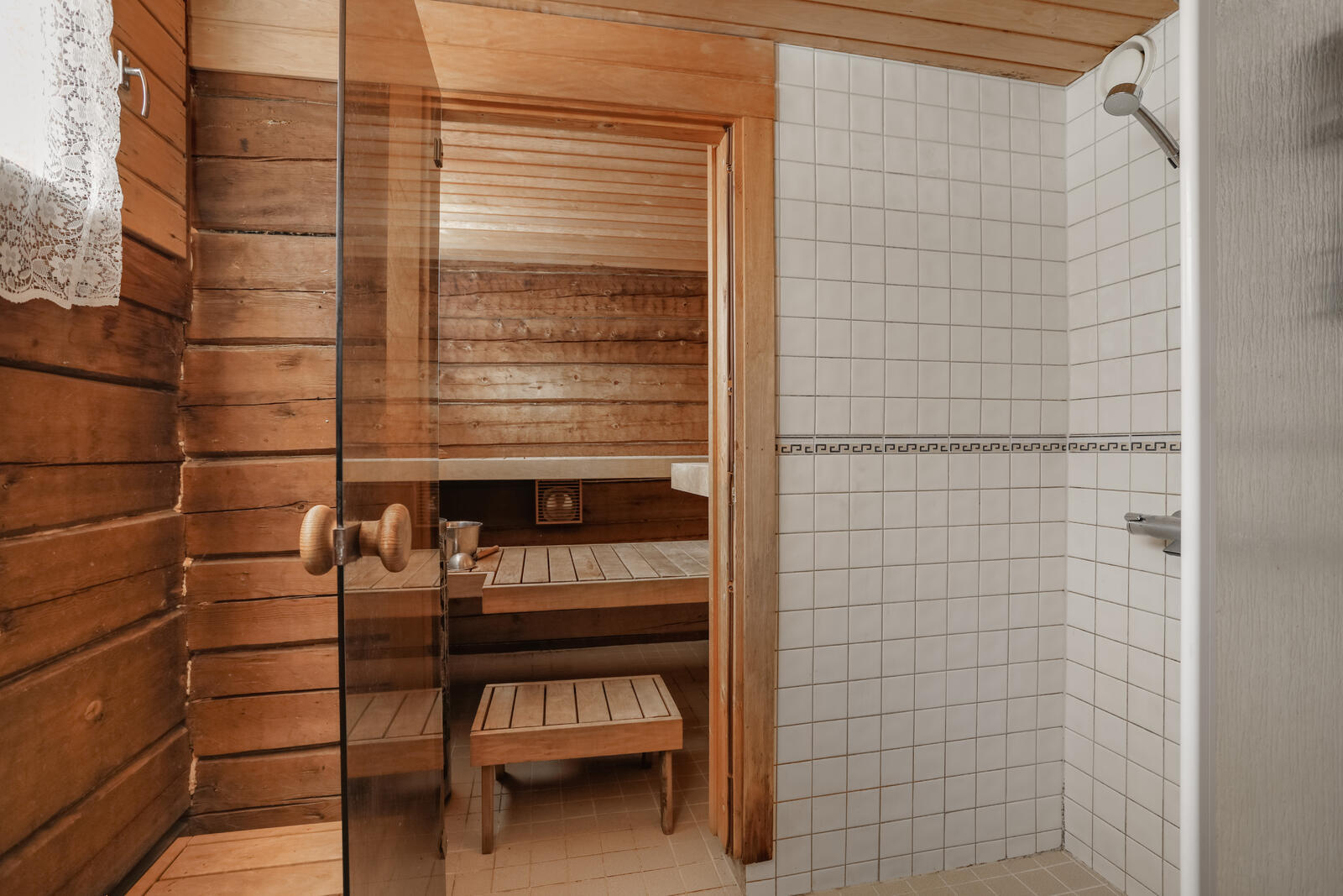 Lattialämmitys, suihkuseinä ja suihku, seinät (puu), lattiat (laatta) |