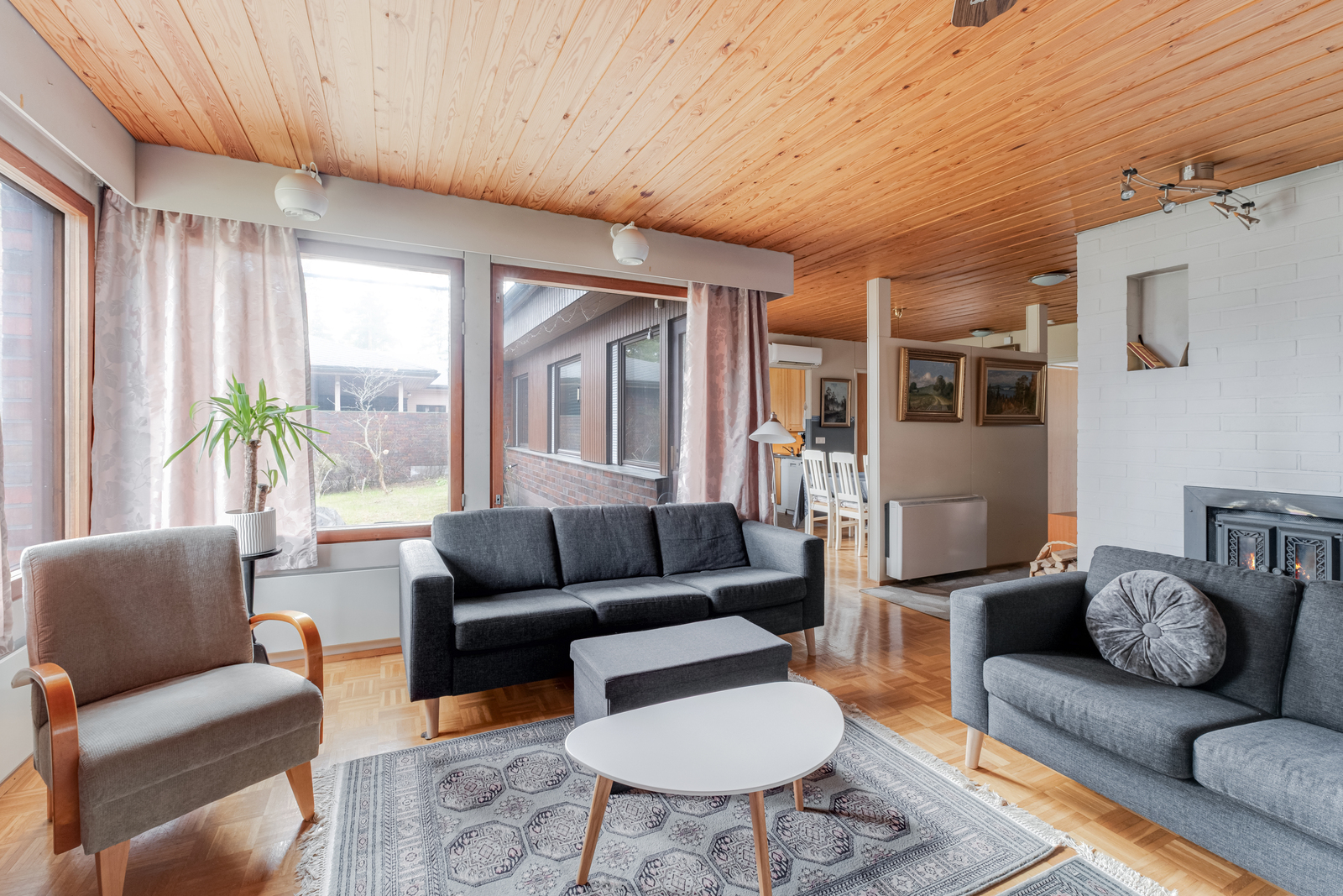 Rauhallinen sijainti lähellä palveluja tekee arjesta vaivatonta, ja suojaisa piha tarjoaa tilaa niin rentoutumiseen kuin leikkeihin.