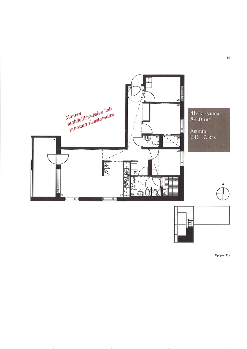 4 h, avok, s, kph/wc, erill.wc, vh, lasitettu parveke |