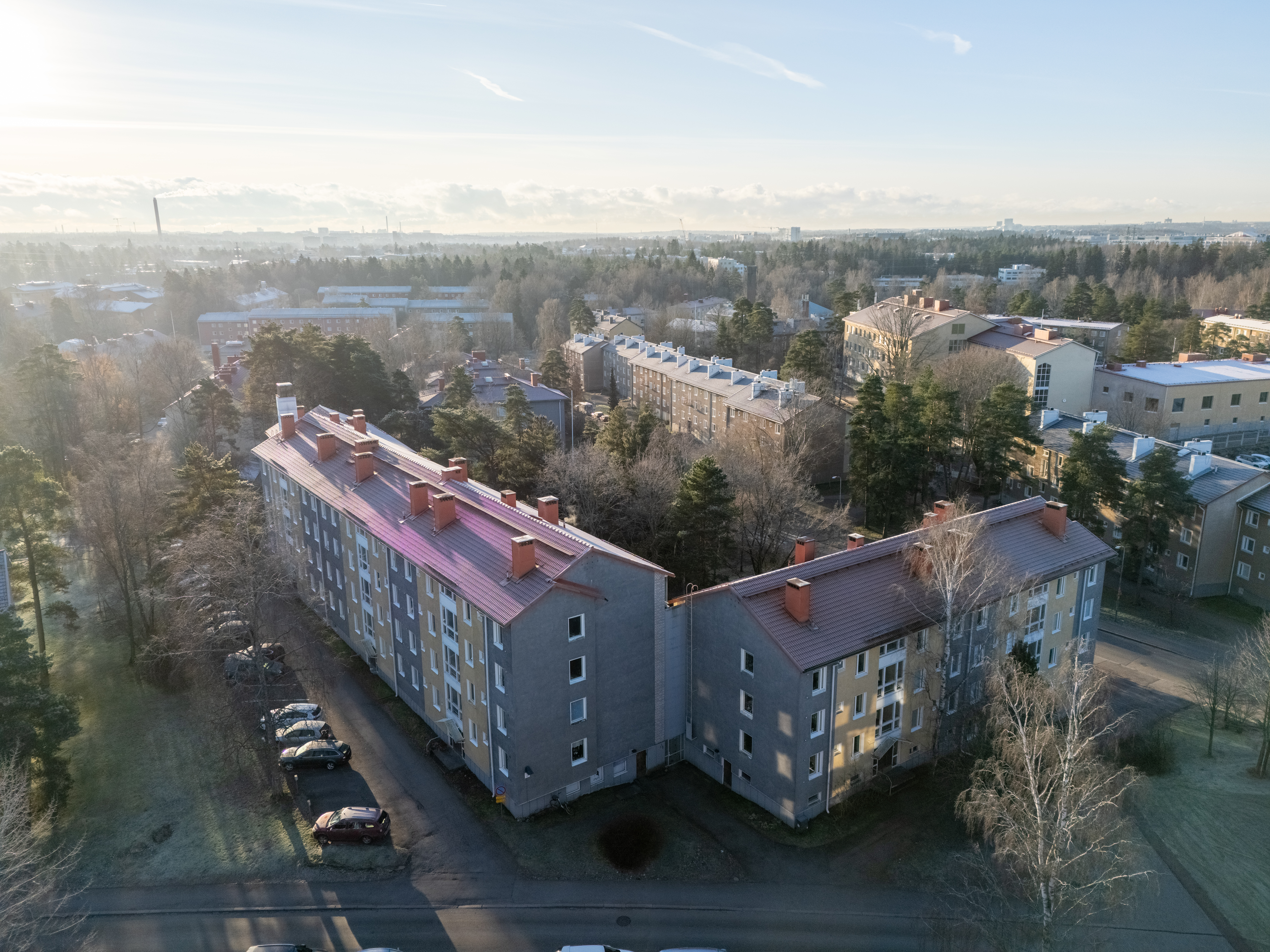 | Tehdyt remontit | 2025 Veden ohjaus, estetty vedentulo talon rakenteisiin, pannuhuoneen kuntotutkimus, ulkoportaiden laattojen kunnostus, porraskäytävien ikkunoiden kuntokartoitus ja korjaustarpeiden selvitys (tarjoukset saatu, hallitus päättää toimenpiteistä), palokatkojen varmistaminen, pihan osittainen kunnostus, lämmitysjärjestelmän kunnon tarkistus 2024 Parvekekaiteiden uusiminen ja parvekkeiden lasitus, grillipaikan kunnostus 2023 Yhtiökokous päätti aloittaa parvekekaideremontin ja parvekelasituksien asentamisen, lämminvesimittarit uusittiin ja rättipattereiden tiivisteet vaihdettiin 2022 Parvekkeiden remontin ja parvekelasituksen suunnittelu, puiden kuntotutkimus ja grillipaikan pohjan tekeminen 2021 Lämmönsiirtimen uusiminen 2020 Tiilikaton kunnostus ja pinnoitus sekä katon turvalaitteet 2019 Pihasuunnitelma, Raksystems kuntoarvio, Kattotutka tiilikaton kuntotutkimus 2018 Kuivaushuoneen kohdalle asennettu patolevy ja rännivesien johtaminen 2016 LVIS-saneeraus, saunatilojen, pesutupien sekä kuivaushuoneiden saneeraus. DNA Welho taloyhtiölaajakaista, lukituksen uusiminen Sento-lukoiksi sekä ovikoodilaitteet ulko-oviin 2010 Parvekekorjaus ja jätekatoksen rakentaminen 2009 Käyttöveden lämmönsiirtimen uusinta 2006 Sokkelin maalipinnan parannus 2004 Julkisivurappauksen korjaus ja maalaus 1998 Linjasulkujen, patteriventtiilien, ikkunoiden ja parvekeovien uusiminen |