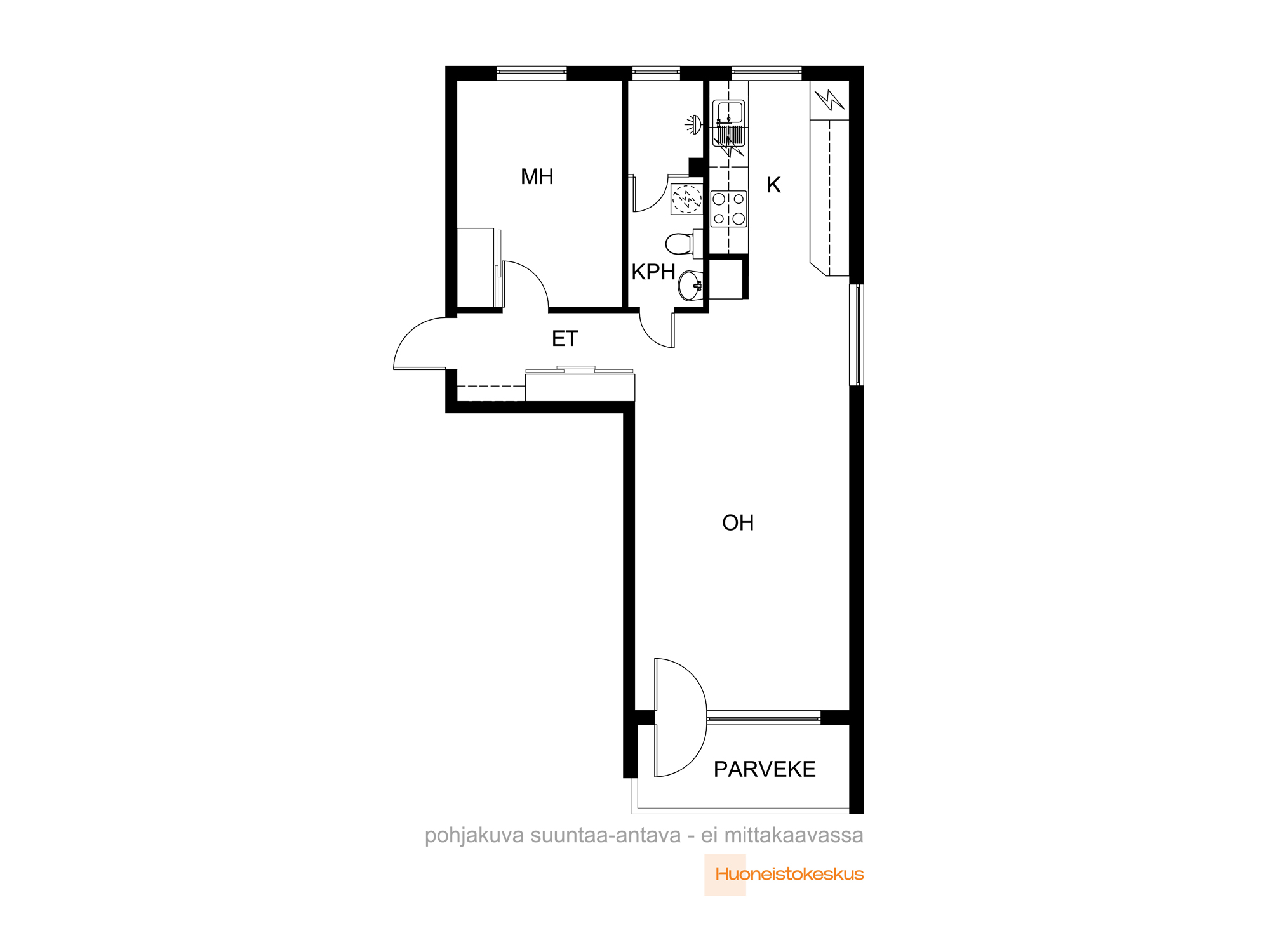 | Keittiön kuvaus | Liesi (Induktioliesi), työtasot (laminaatti), seinät (maali), lattiat (laatta), jääkaappipakastin, erillisuuni ja astianpesukone |