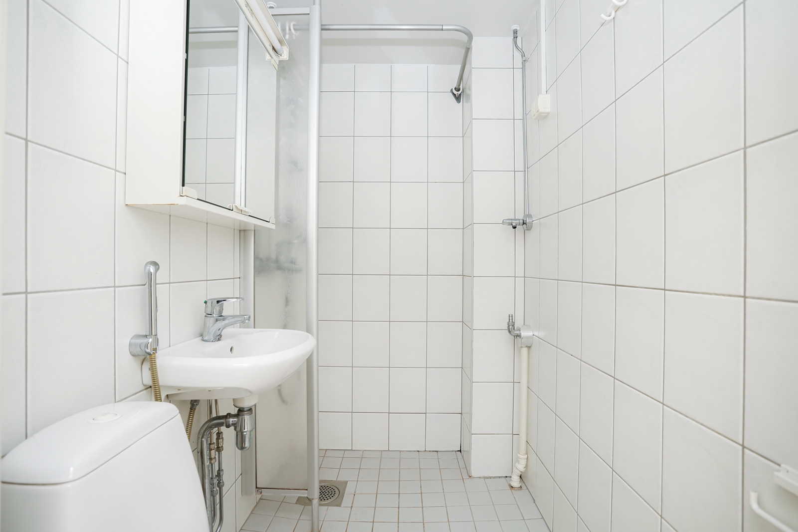 Pesukoneliitäntä, lattialämmitys, peilikaappi, suihku ja wc-istuin, seinät (kaakeli), lattiat (laatta), Peruskorjattu v.2005 linjasaneerauksen yhteydessä. |