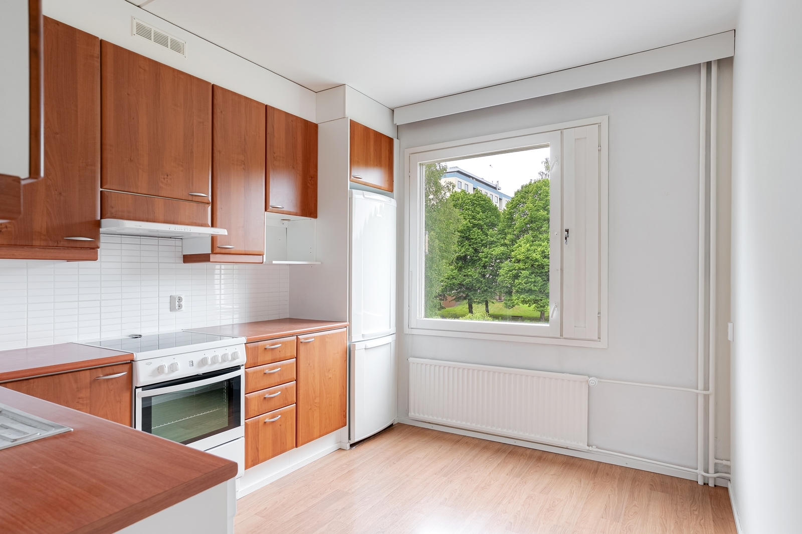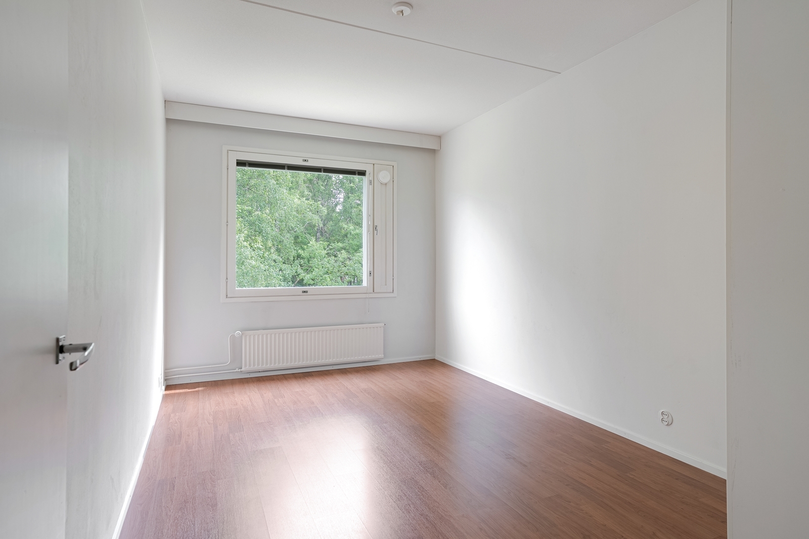 Tilava ja valoisa päätyhuoneisto rauhallisella sijainnilla päättyvän kadun varrella. Asunnossa on lasitettu parveke, jolta avautuu vehreät näkymät viheralueelle. Pohjaratkaisu on toimiva: erillinen wc sekä toinen wc kylpyhuoneen yhteydessä tuovat arkeen sujuvuutta.