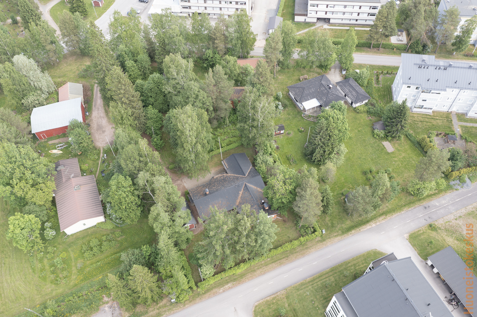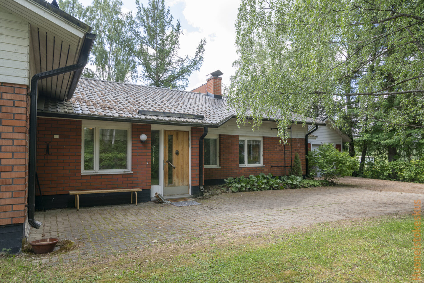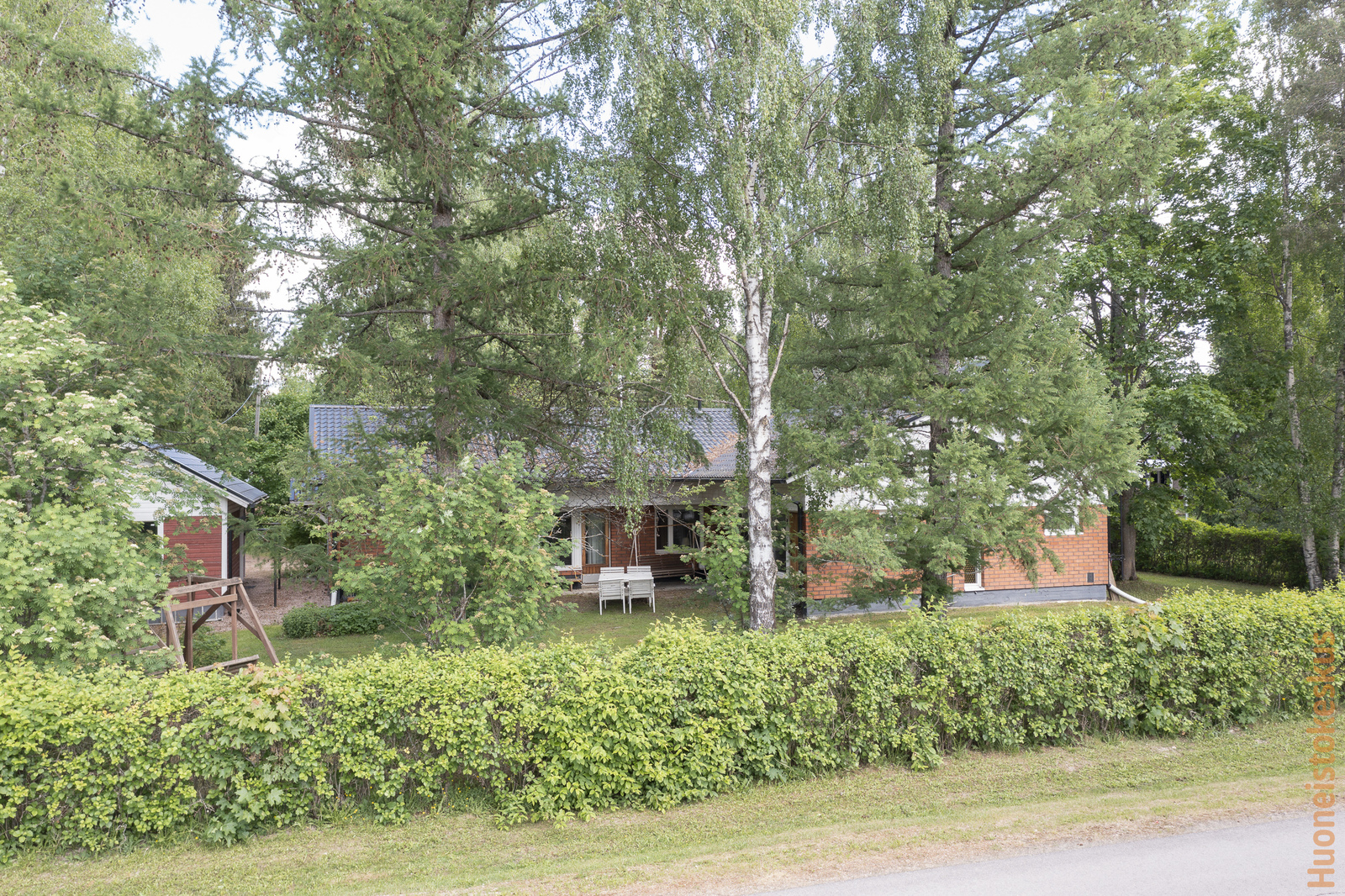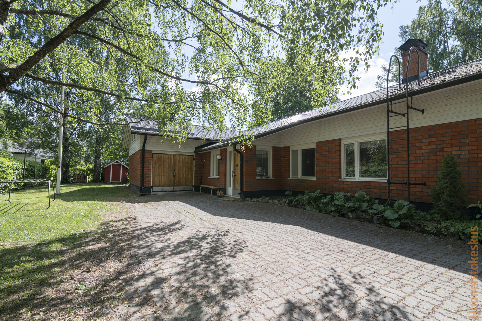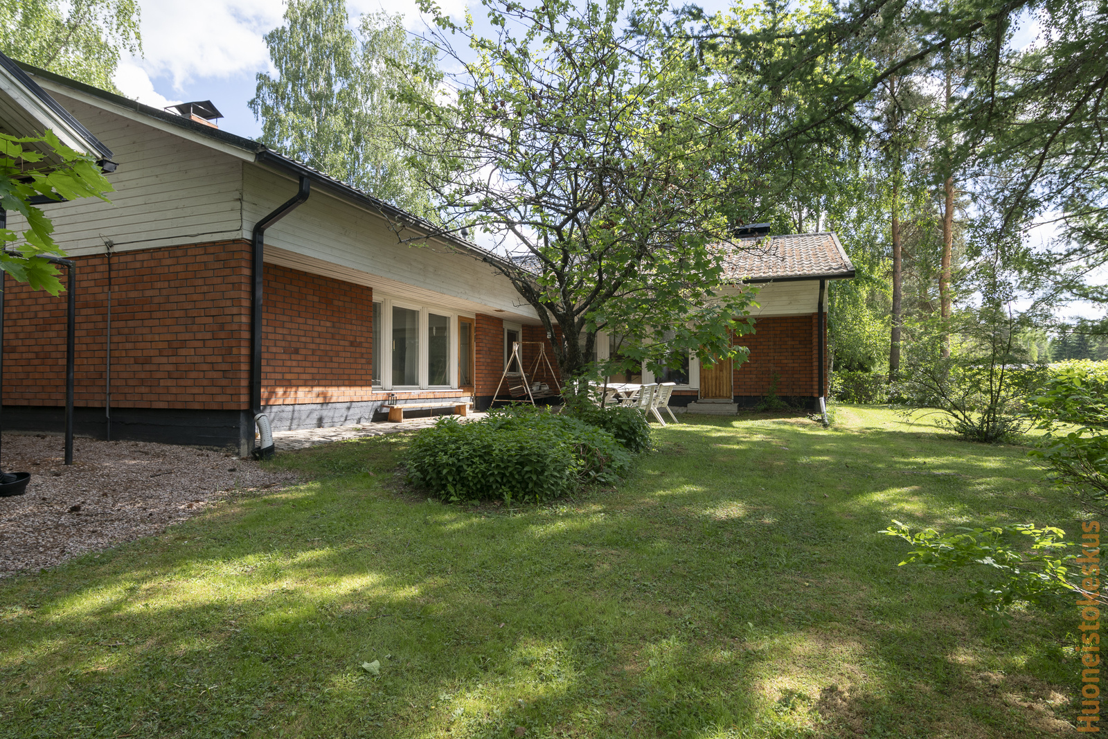 | Muuta kauppaan kuuluvaa | Pihavaja, lipputanko, puinen pihakeinu. Lisätietoja sisältyvistä varusteista: ilmalämpöpumppu, istutukset, jätesäiliö, kaapistot, kiinteät valaisimet, lämminvesivaraaja, pyykinkuivausteline, sälekaihtimet/rullaverhot. |